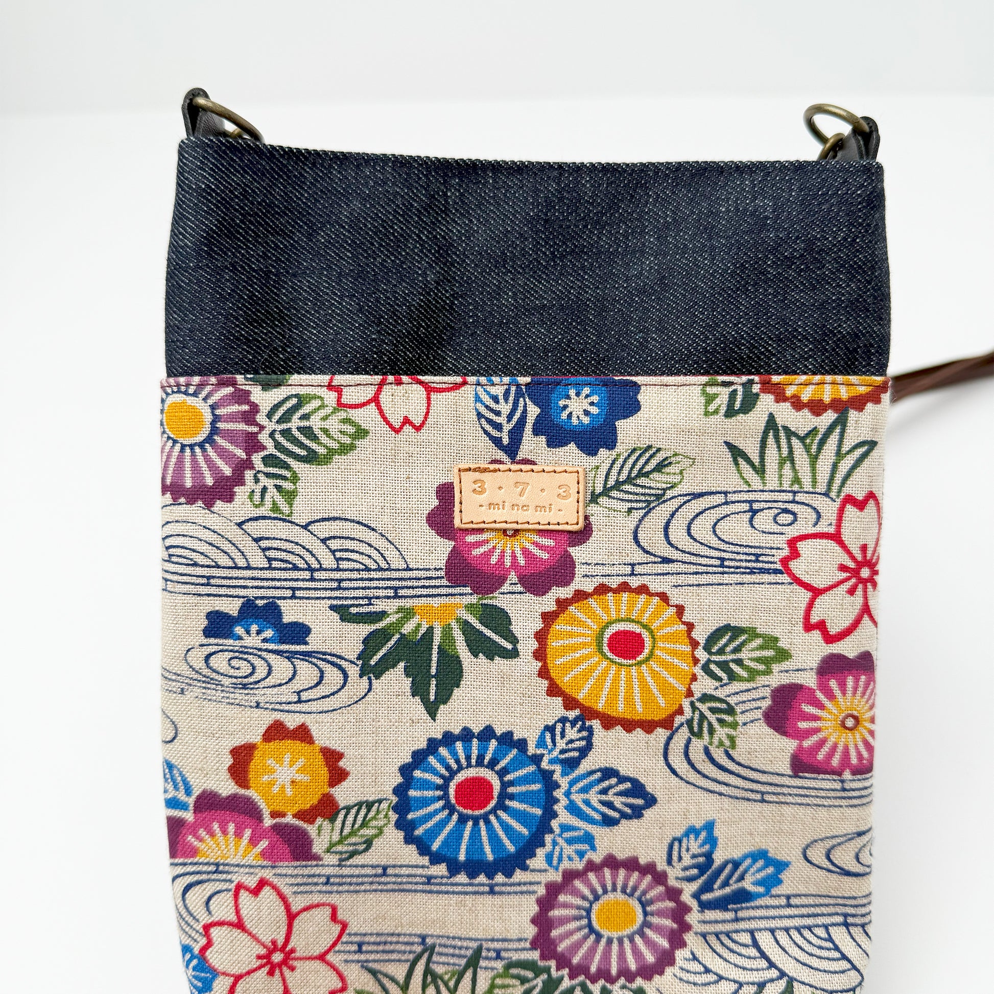 手捺染の技法を生かして表現した紅型柄と高品質な岡山デニムを掛け合わせました。紅型柄とデニムをバランスよく配置し、男女問わず日常使いしやすいデザイン。紅型柄部分は外ポケットになっていて携帯など入れるのに便利です。紐部分は取り外しも可能。