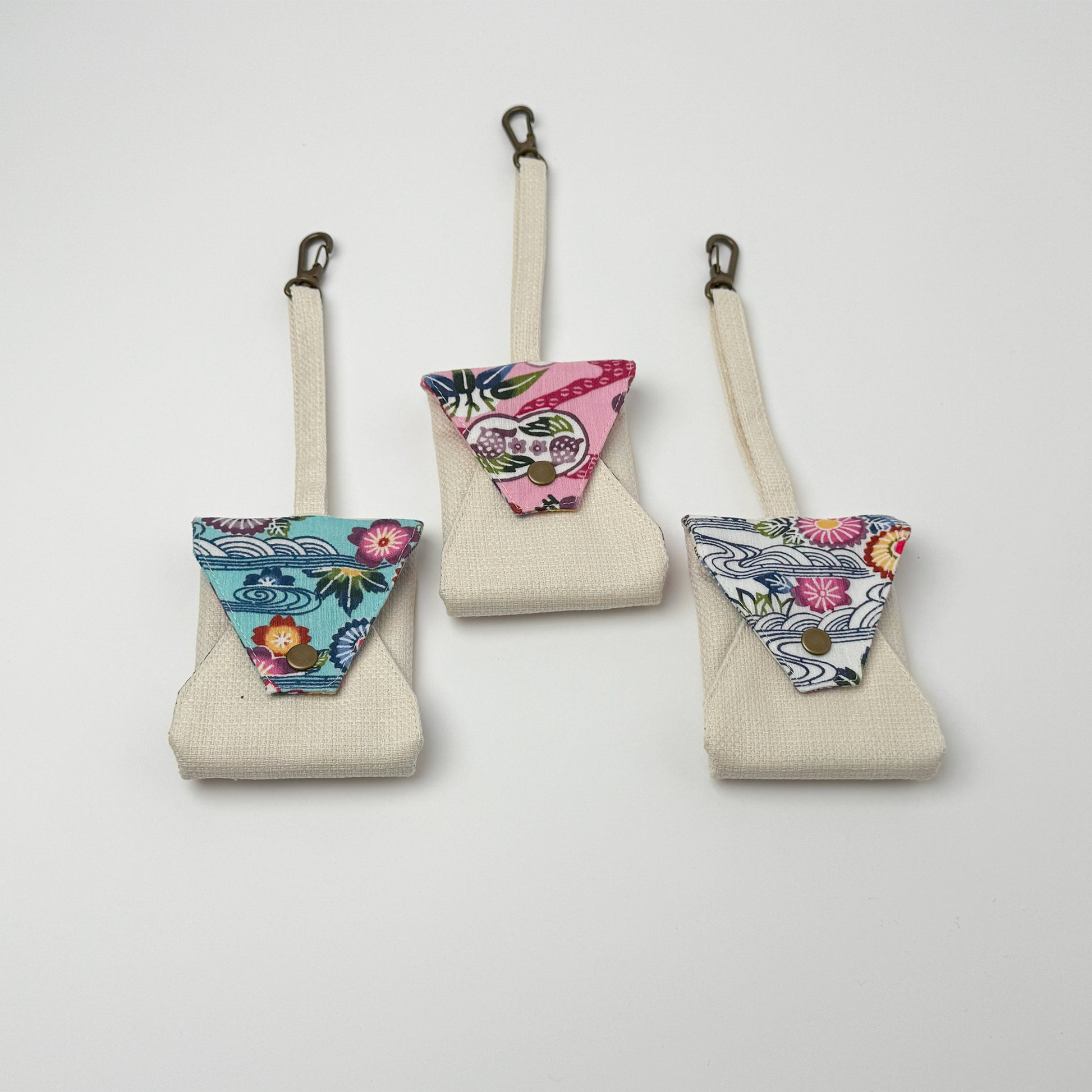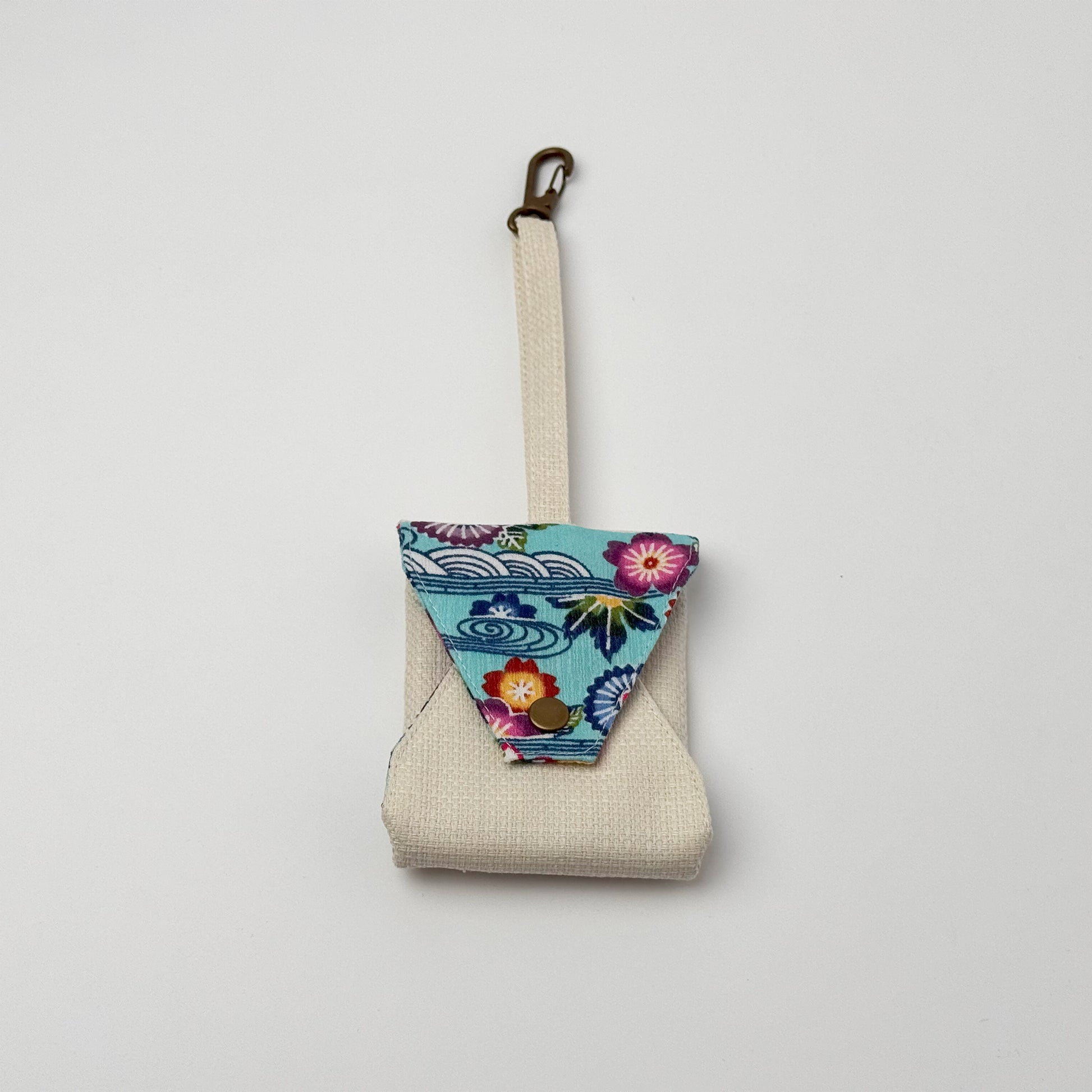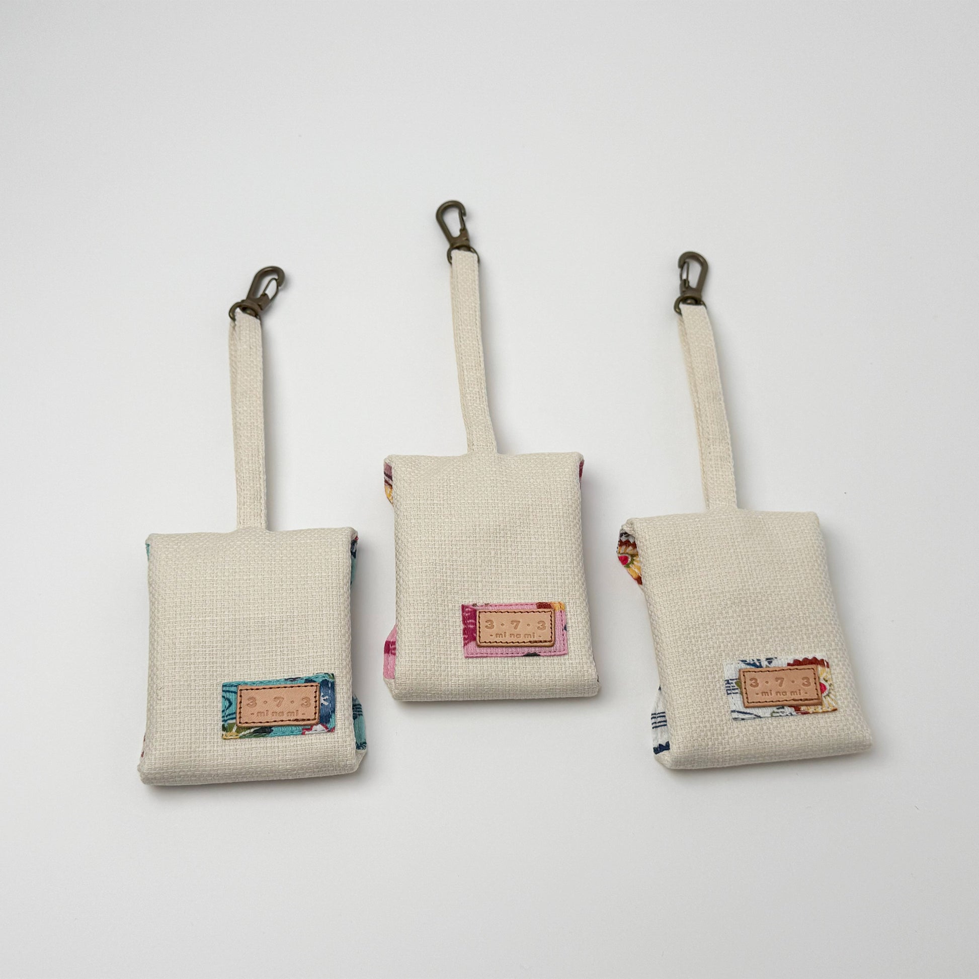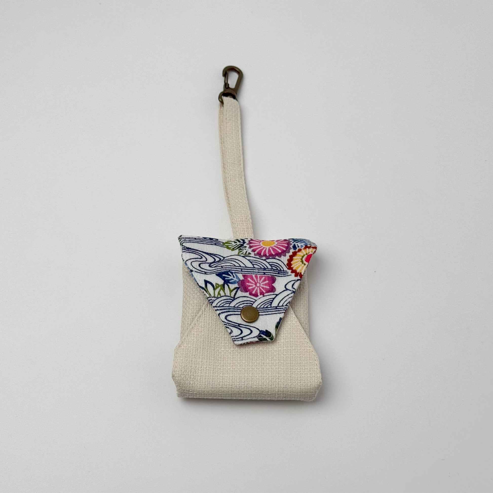 手捺染の技法を生かして表現した紅型柄をポイント使いしたキーケース。バッグの中で迷子になりがちな鍵類をまとめておけるケースです。付属のカラビナをバッグの持ち手などに引っかけておくと取り出しもさっとしやすくなります。
