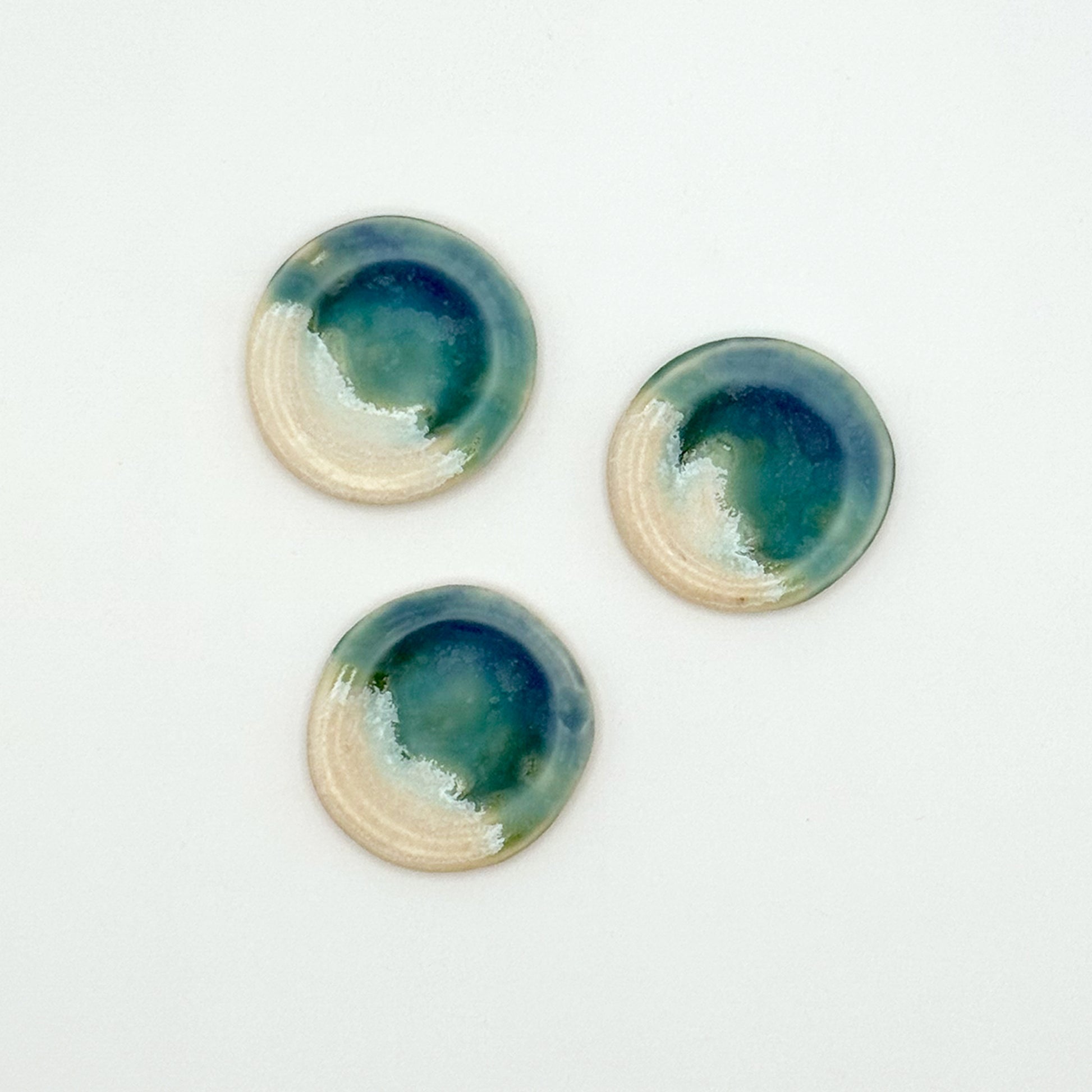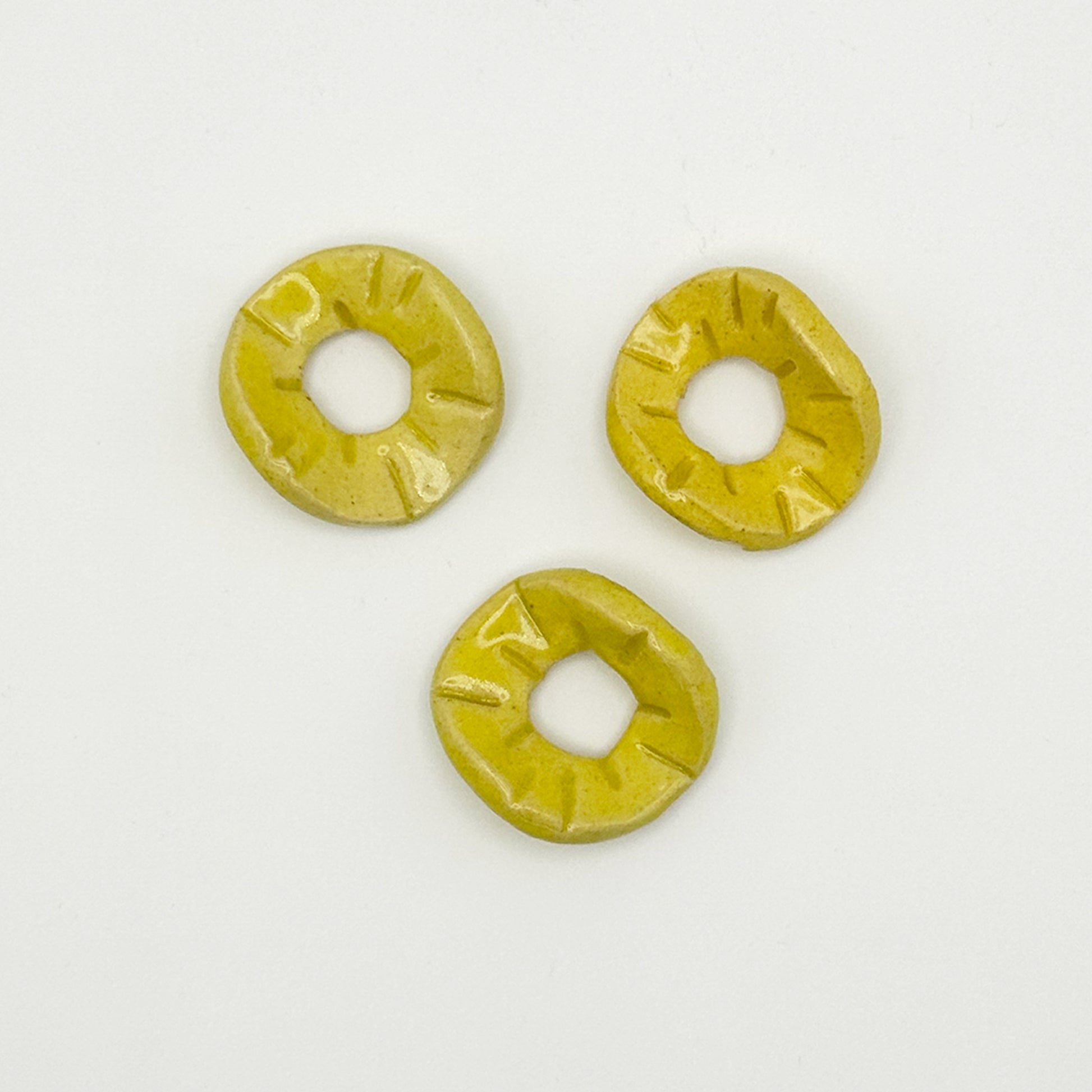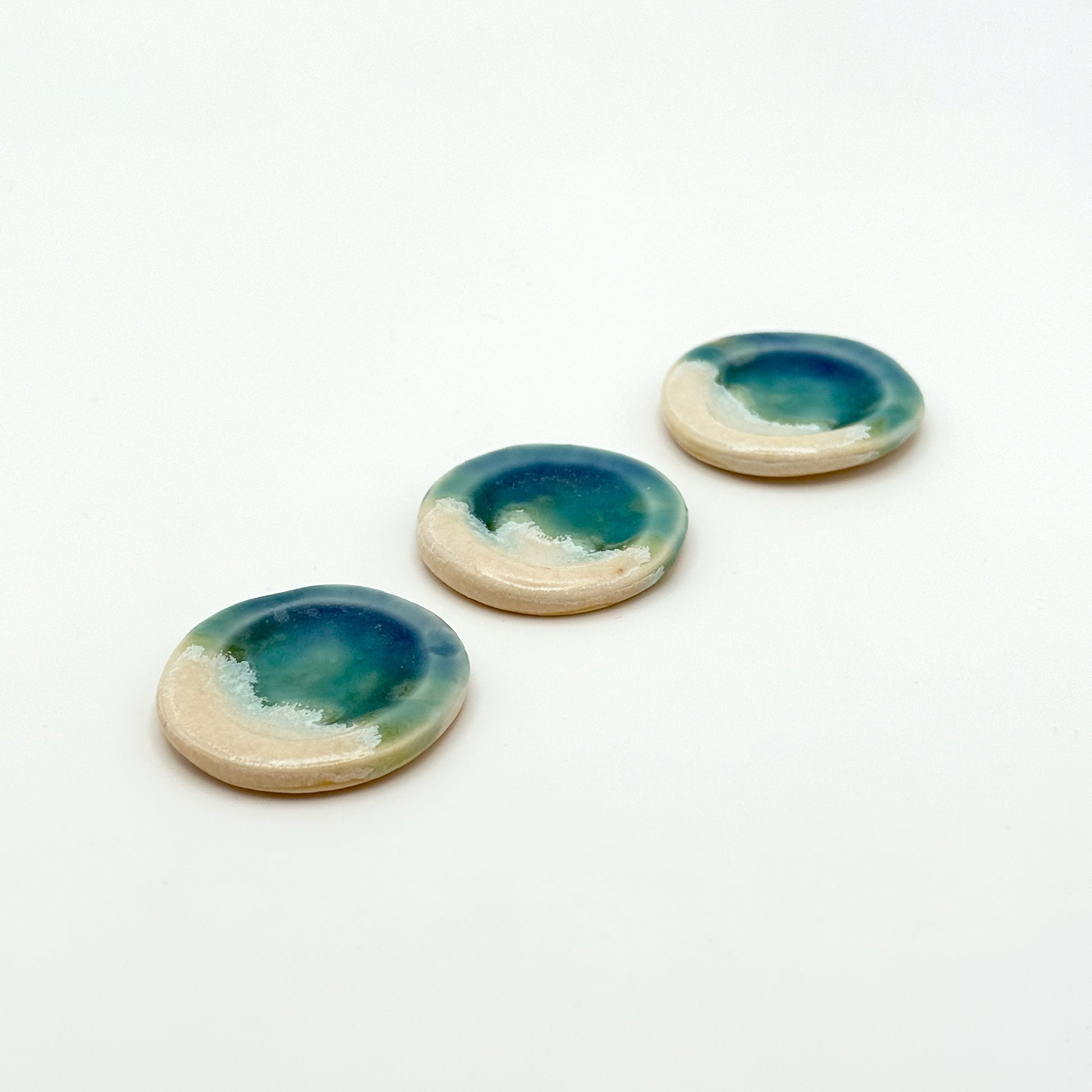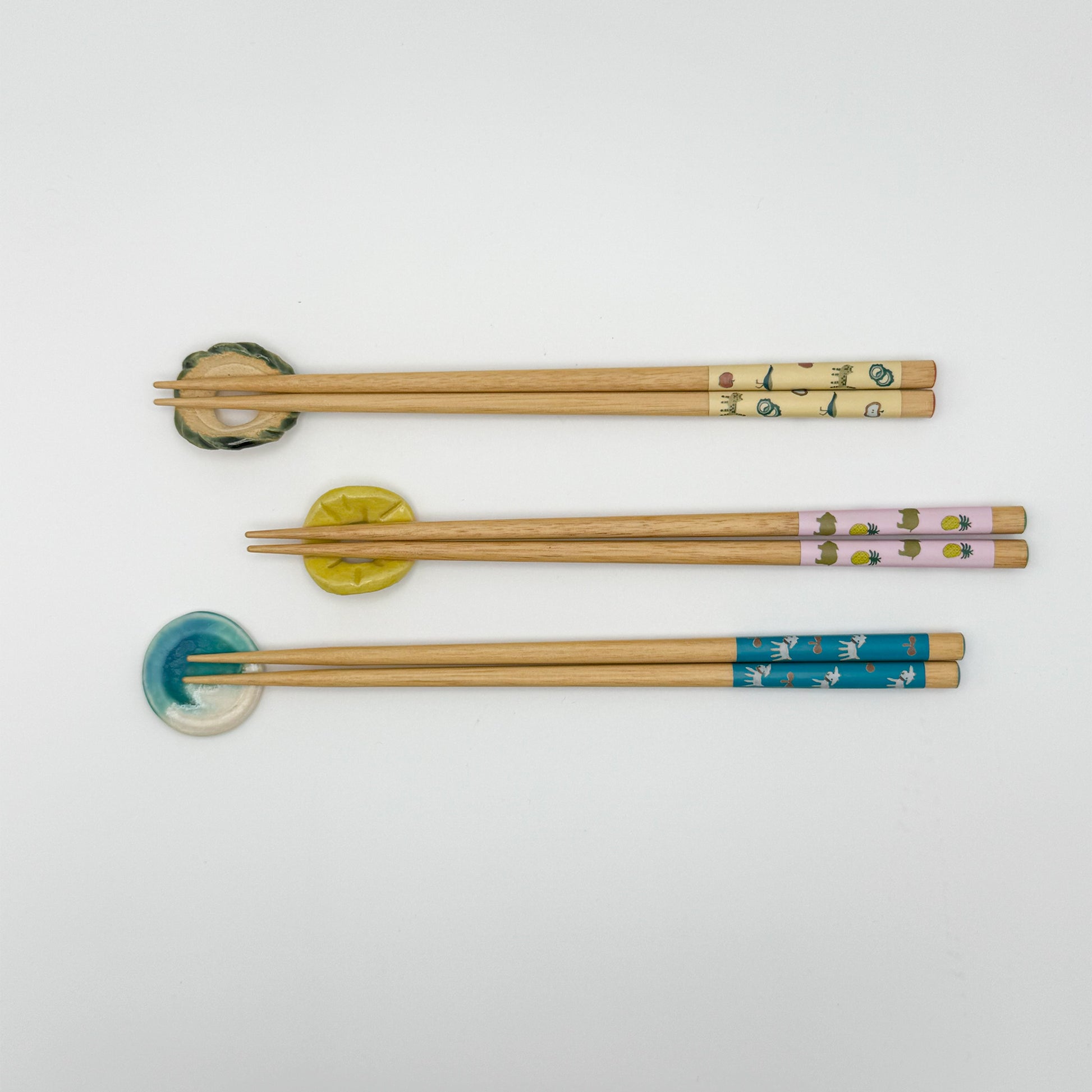 沖縄を中心に活動している陶芸工房”アトリエクッチャネ”。輪切りしたゴーヤー、パインの箸置きです。食卓に添えるだけでほっこりとした雰囲気になります。ラグーンは上品な雰囲気にも◎。