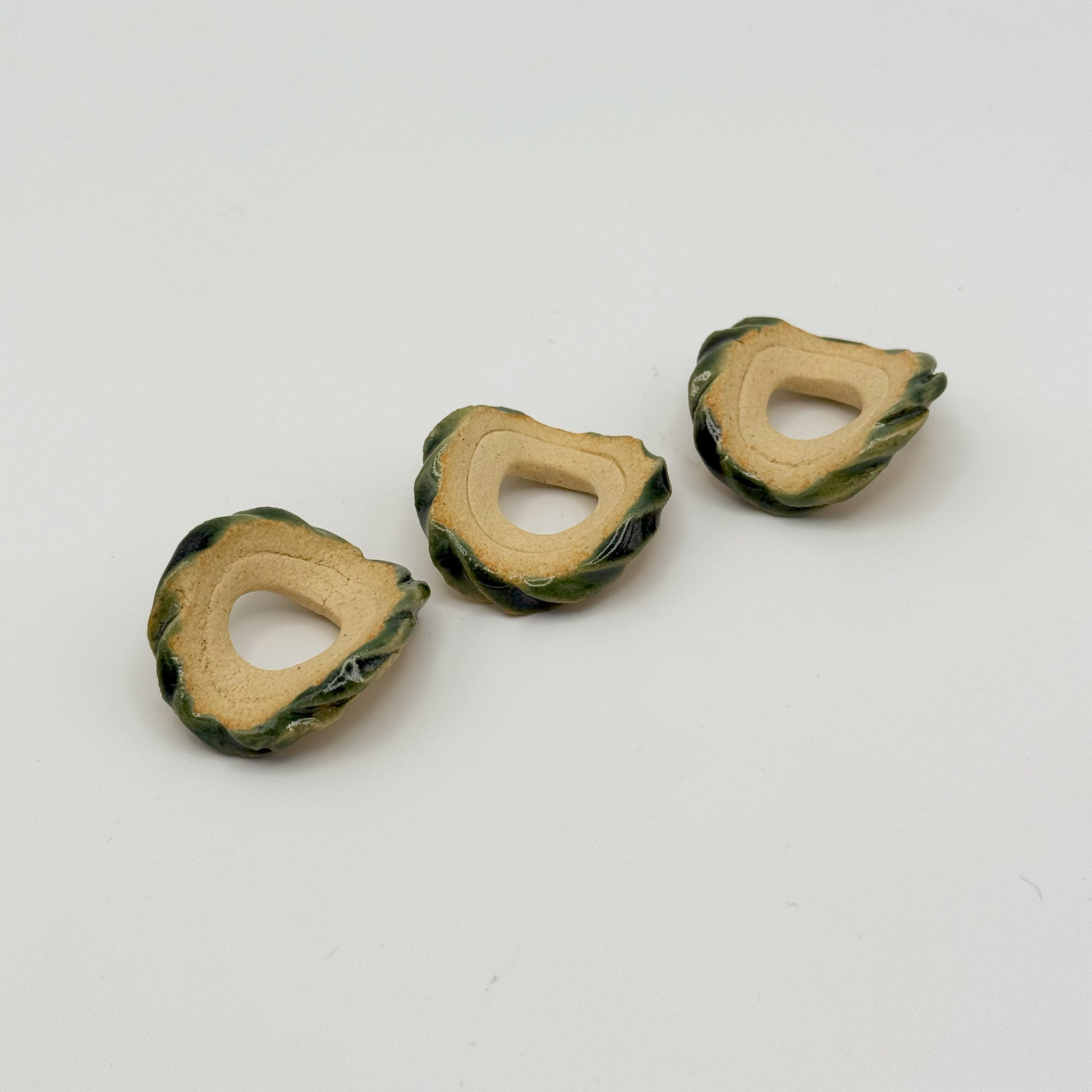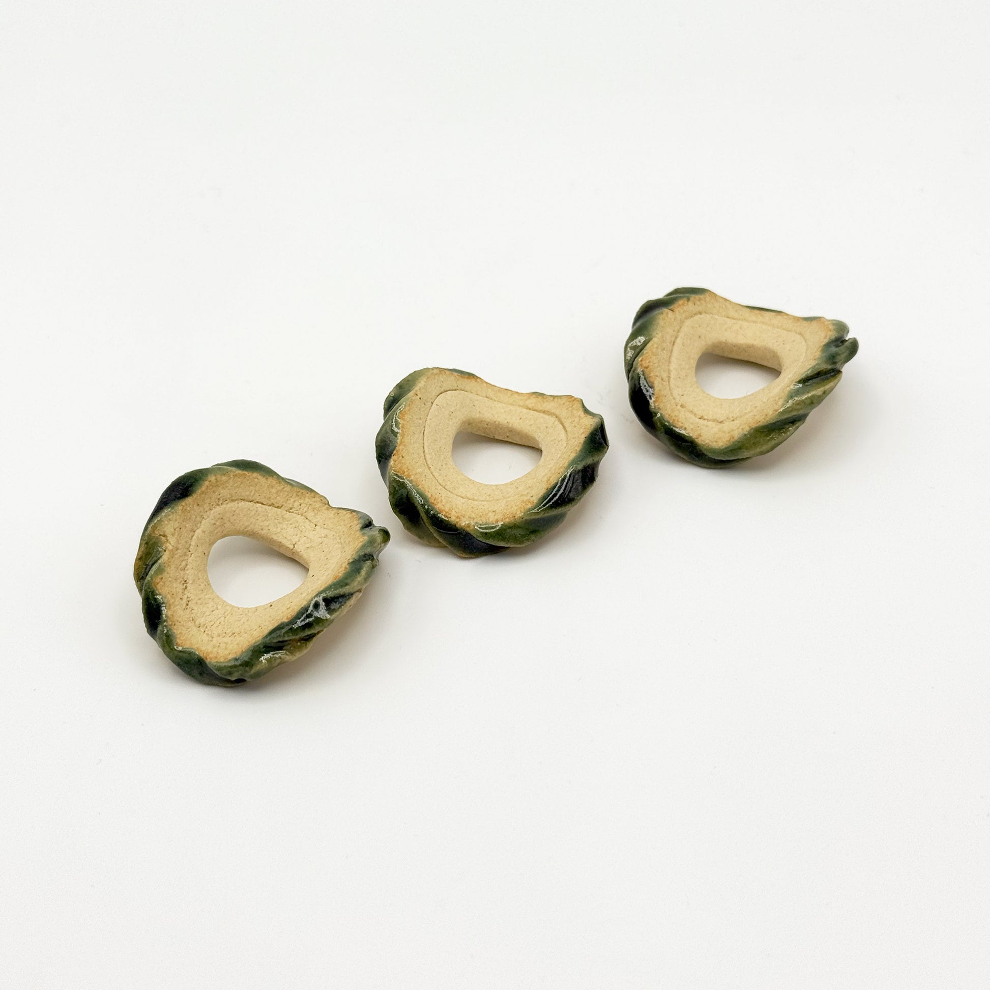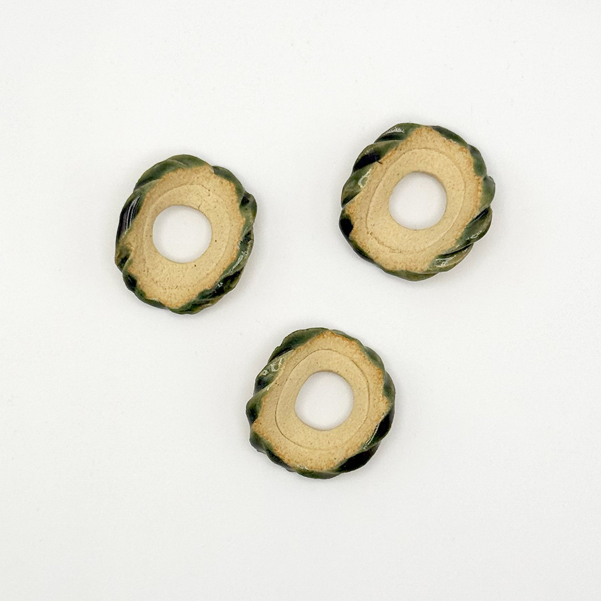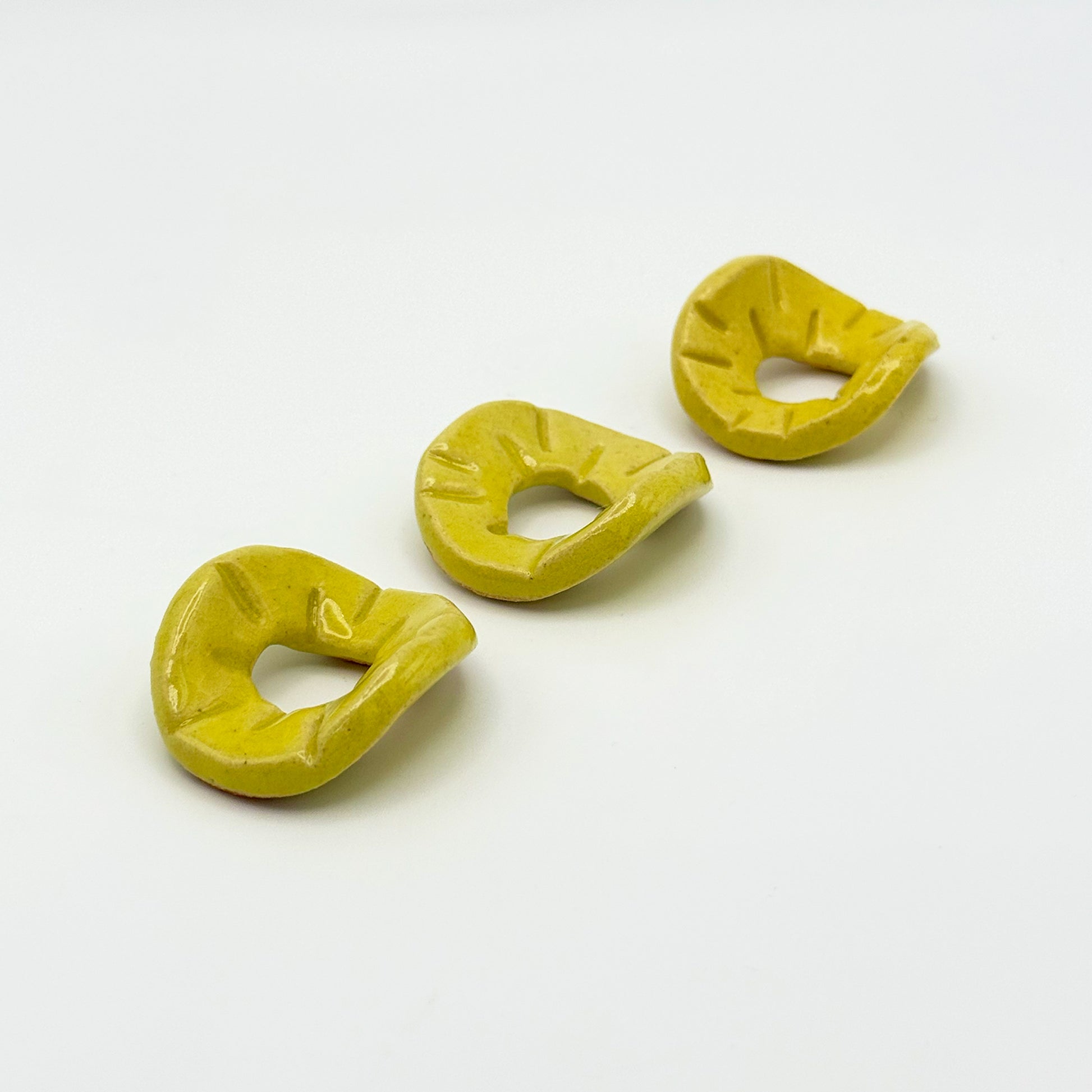沖縄を中心に活動している陶芸工房”アトリエクッチャネ”。輪切りしたゴーヤー、パインの箸置きです。食卓に添えるだけでほっこりとした雰囲気になります。ラグーンは上品な雰囲気にも◎。