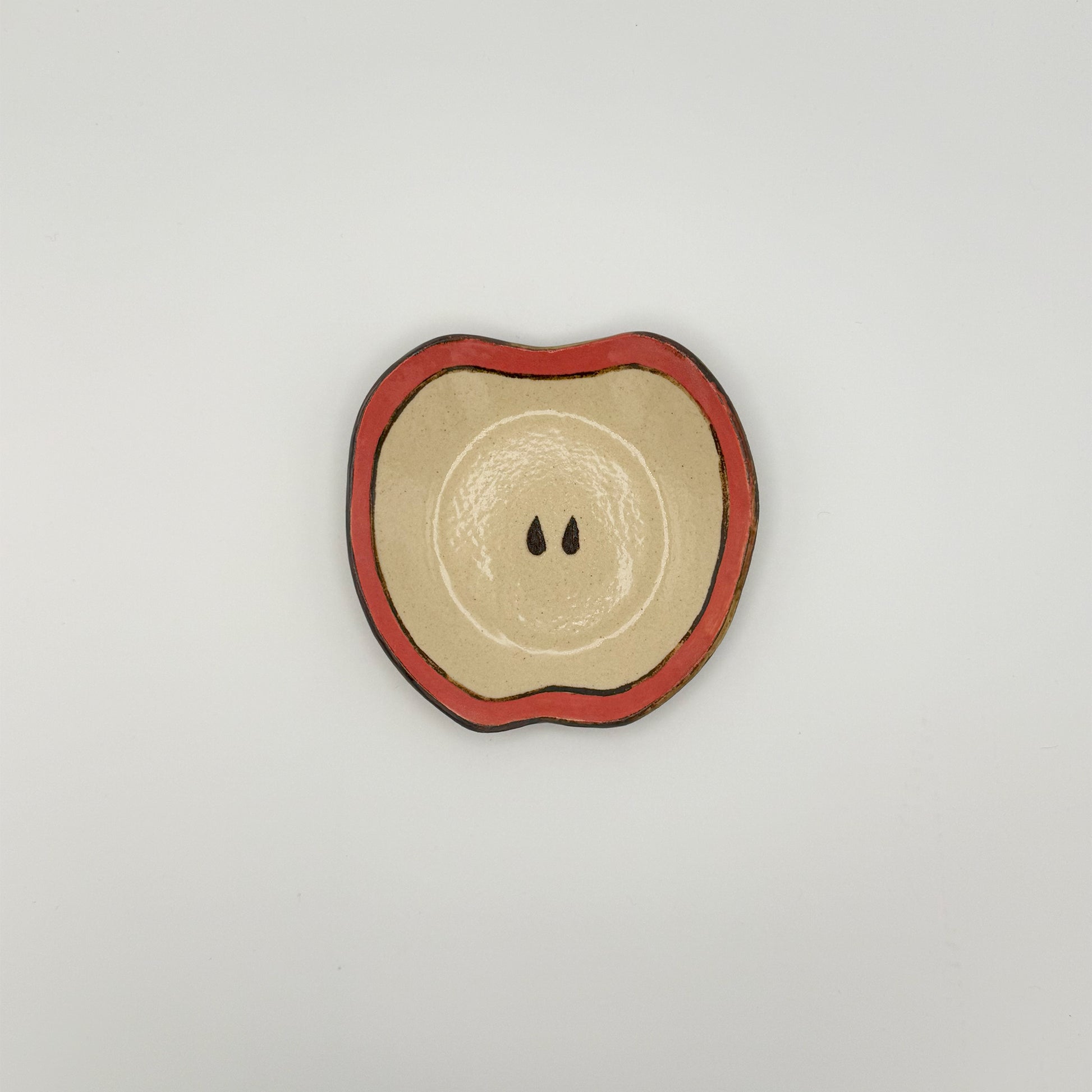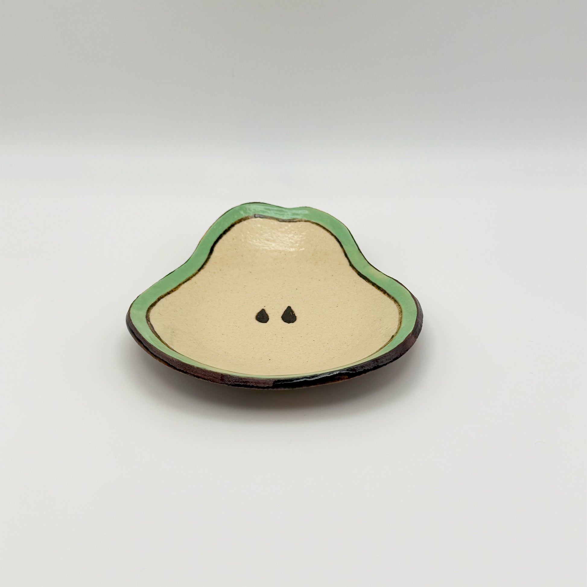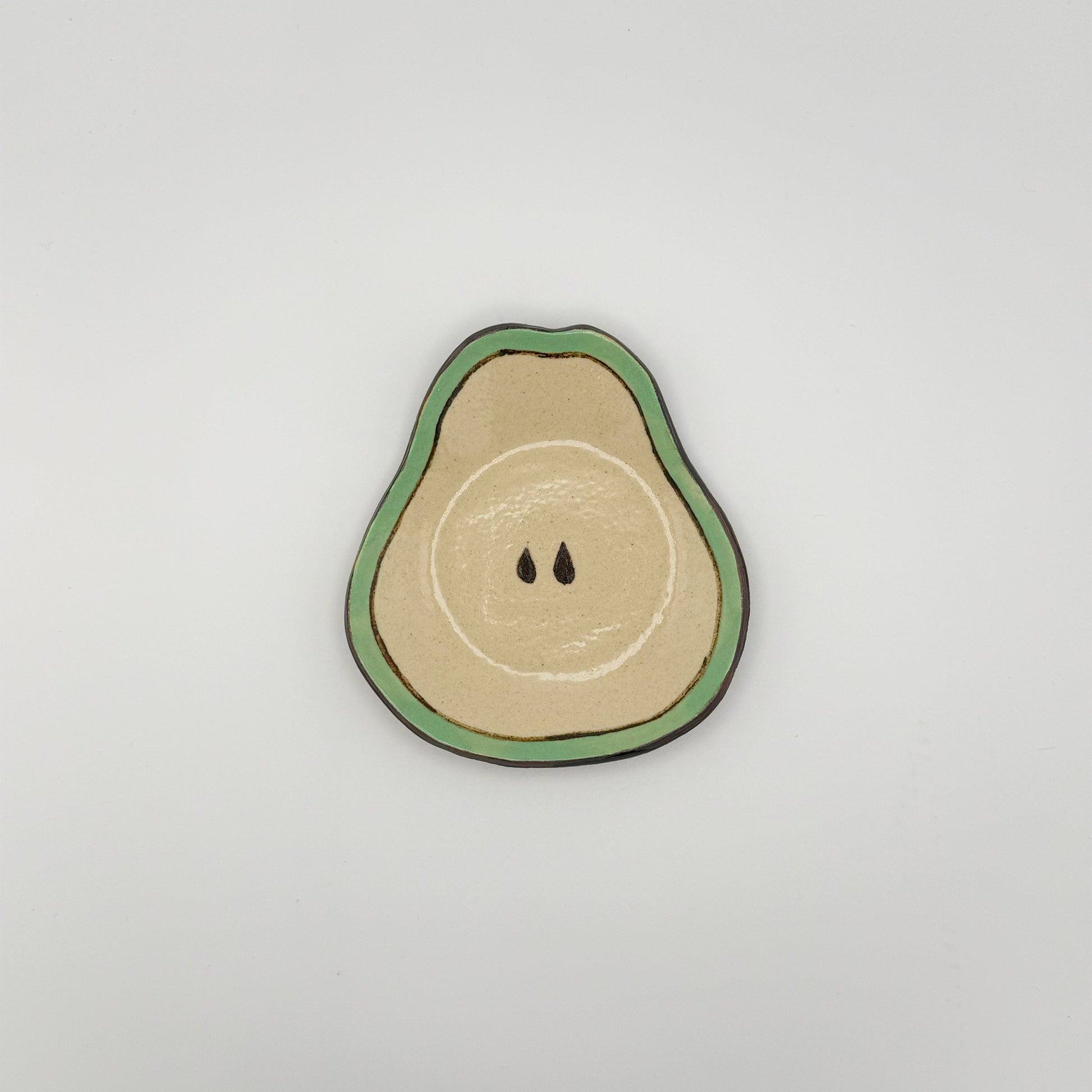沖縄を中心に活動している陶芸工房”アトリエクッチャネ”。果物の輪切りの形をそのままお皿にしました。可愛らしい種がポイントです。