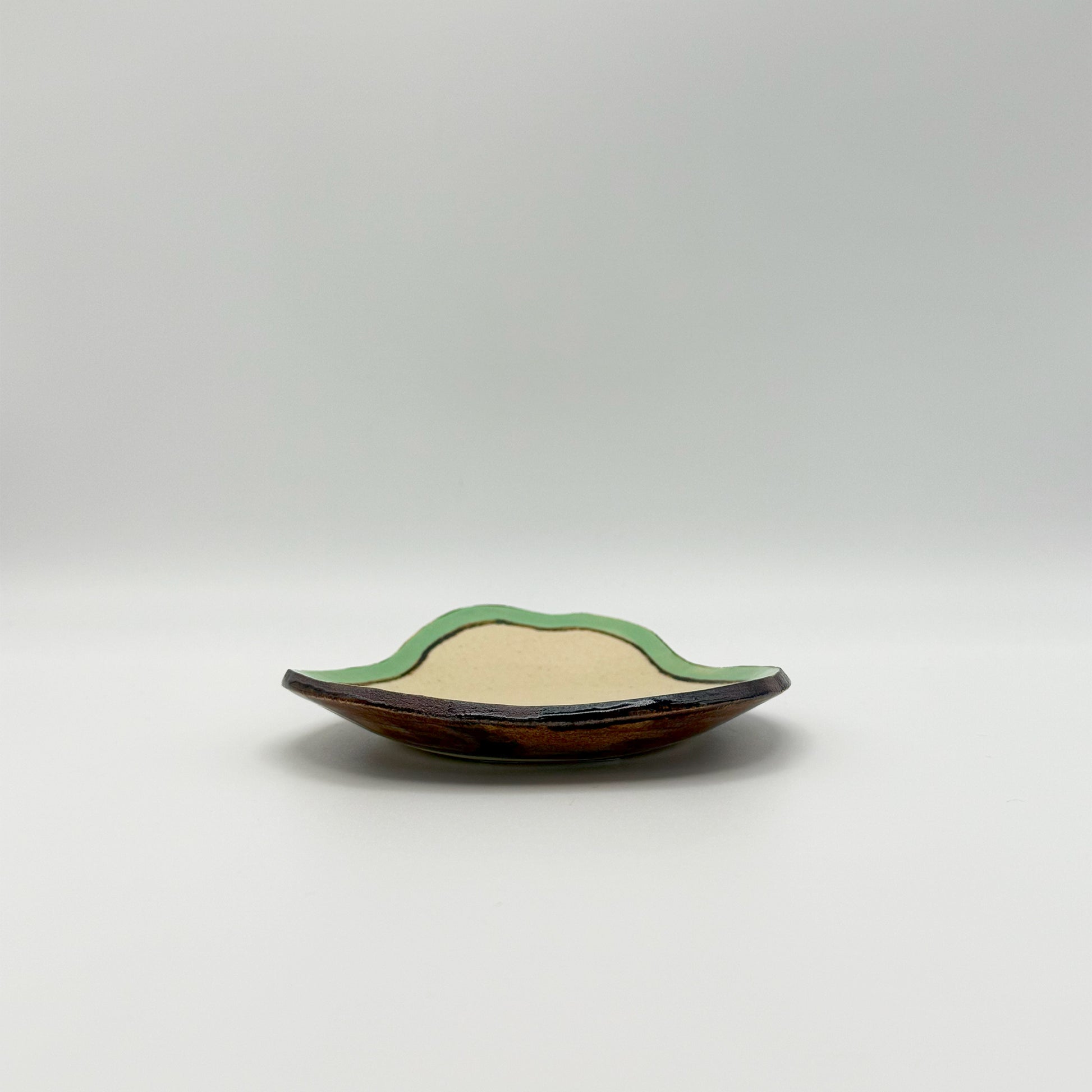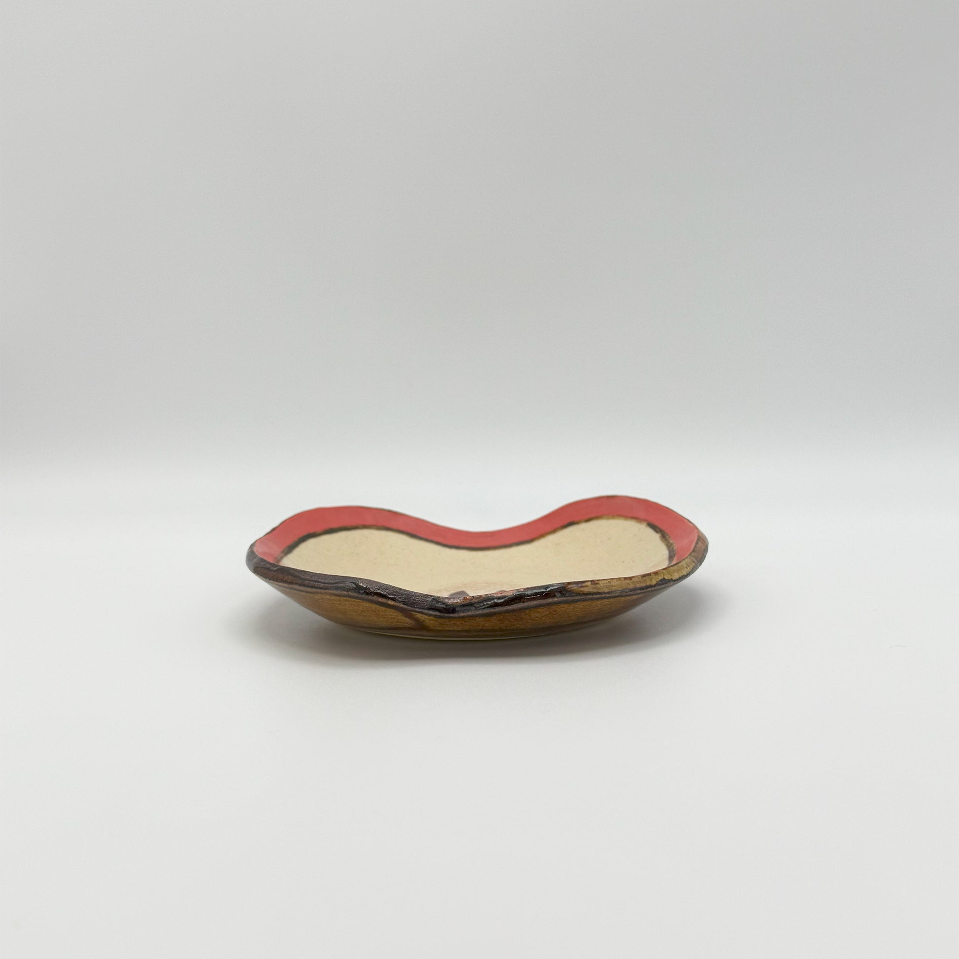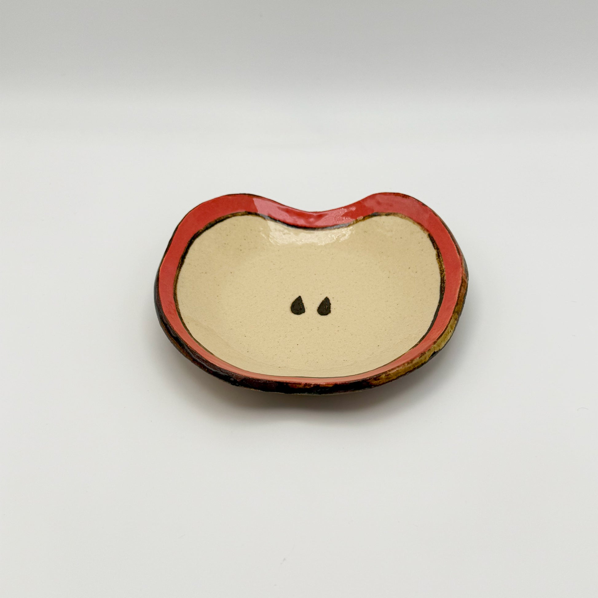 沖縄を中心に活動している陶芸工房”アトリエクッチャネ”。果物の輪切りの形をそのままお皿にしました。可愛らしい種がポイントです。