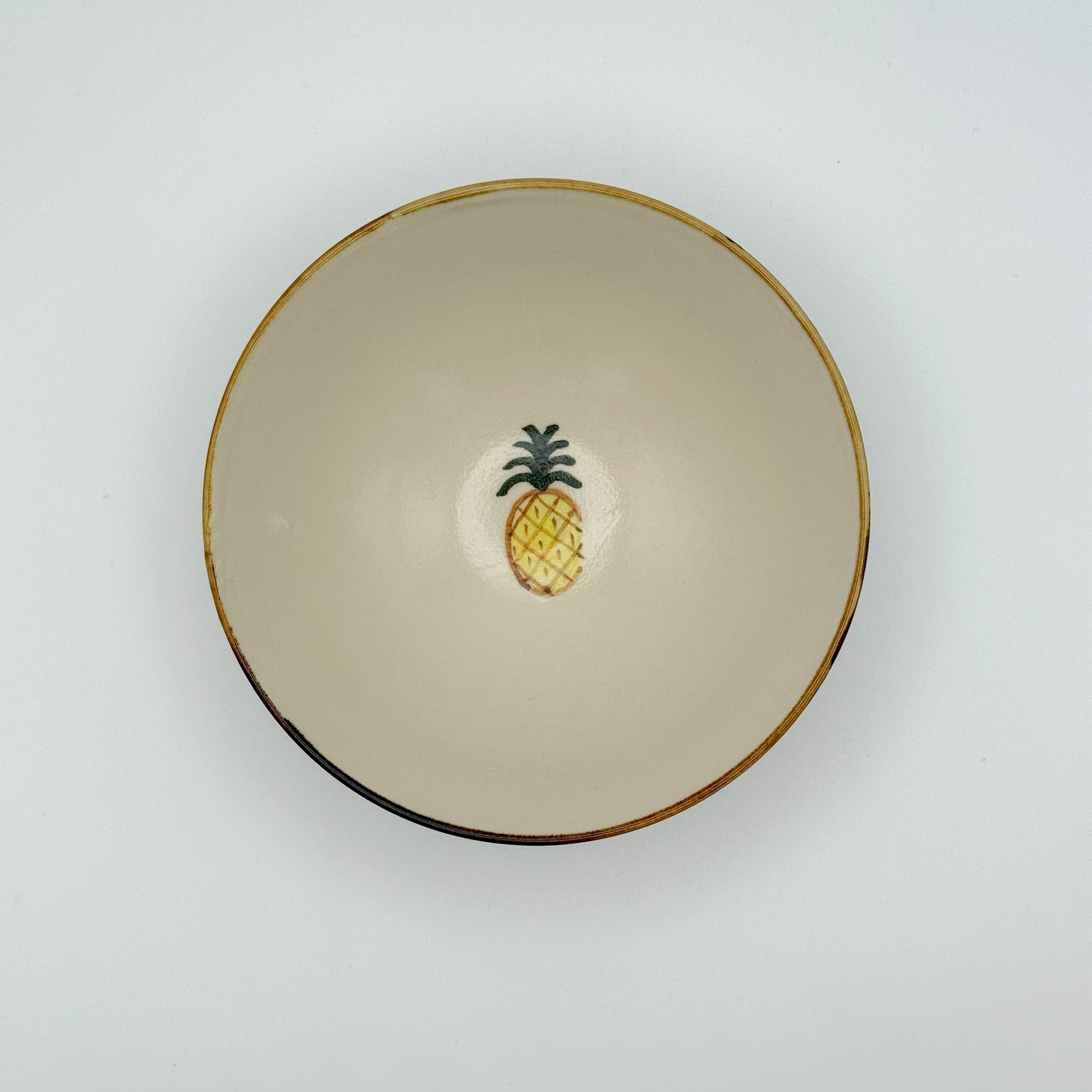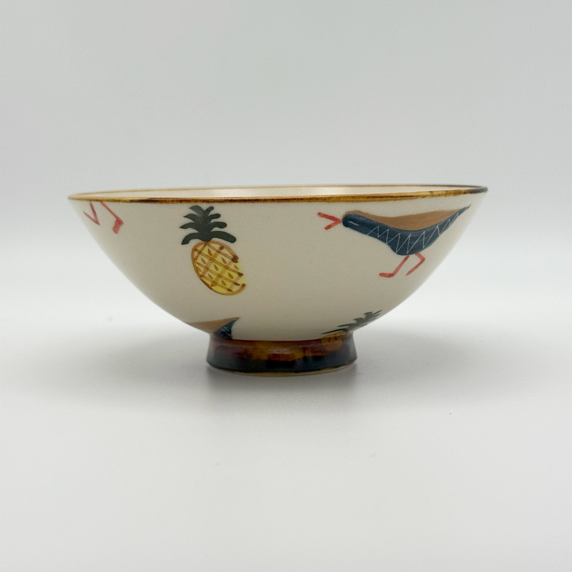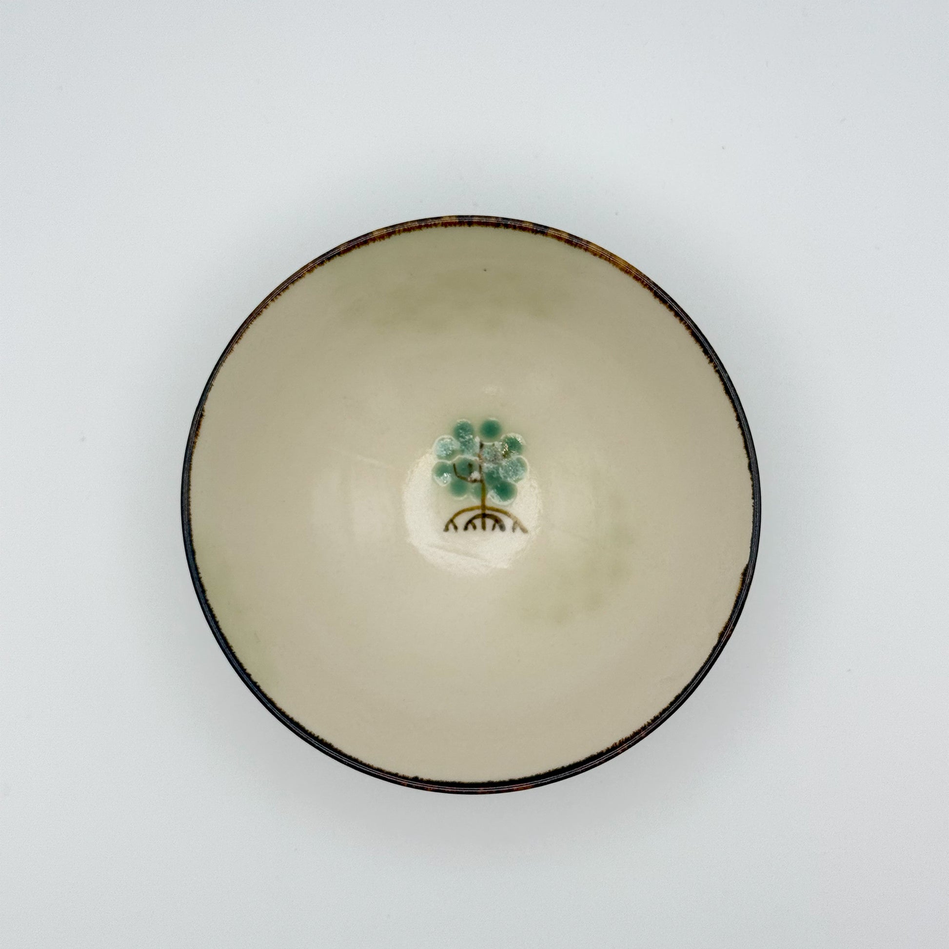 沖縄を中心に活動している陶芸工房”アトリエクッチャネ”。小ぶりなマカイ(お椀)。お子様や女性にぴったりの大きさです。内側の底面にもワンポイントで絵柄が描かれていて、食後も楽しみになる器です。