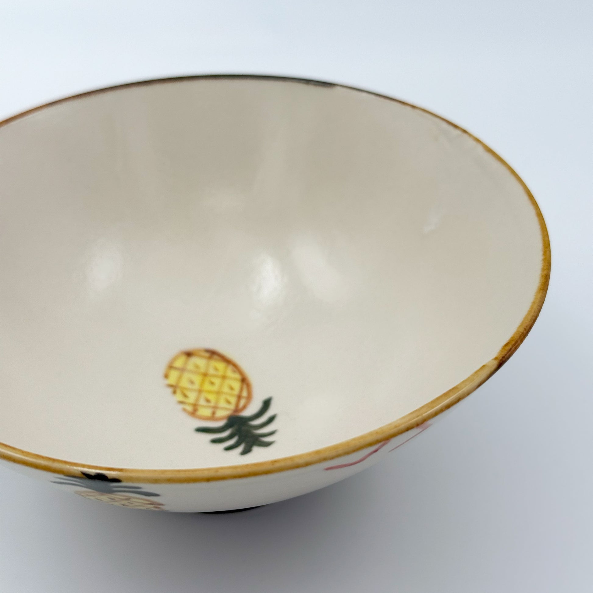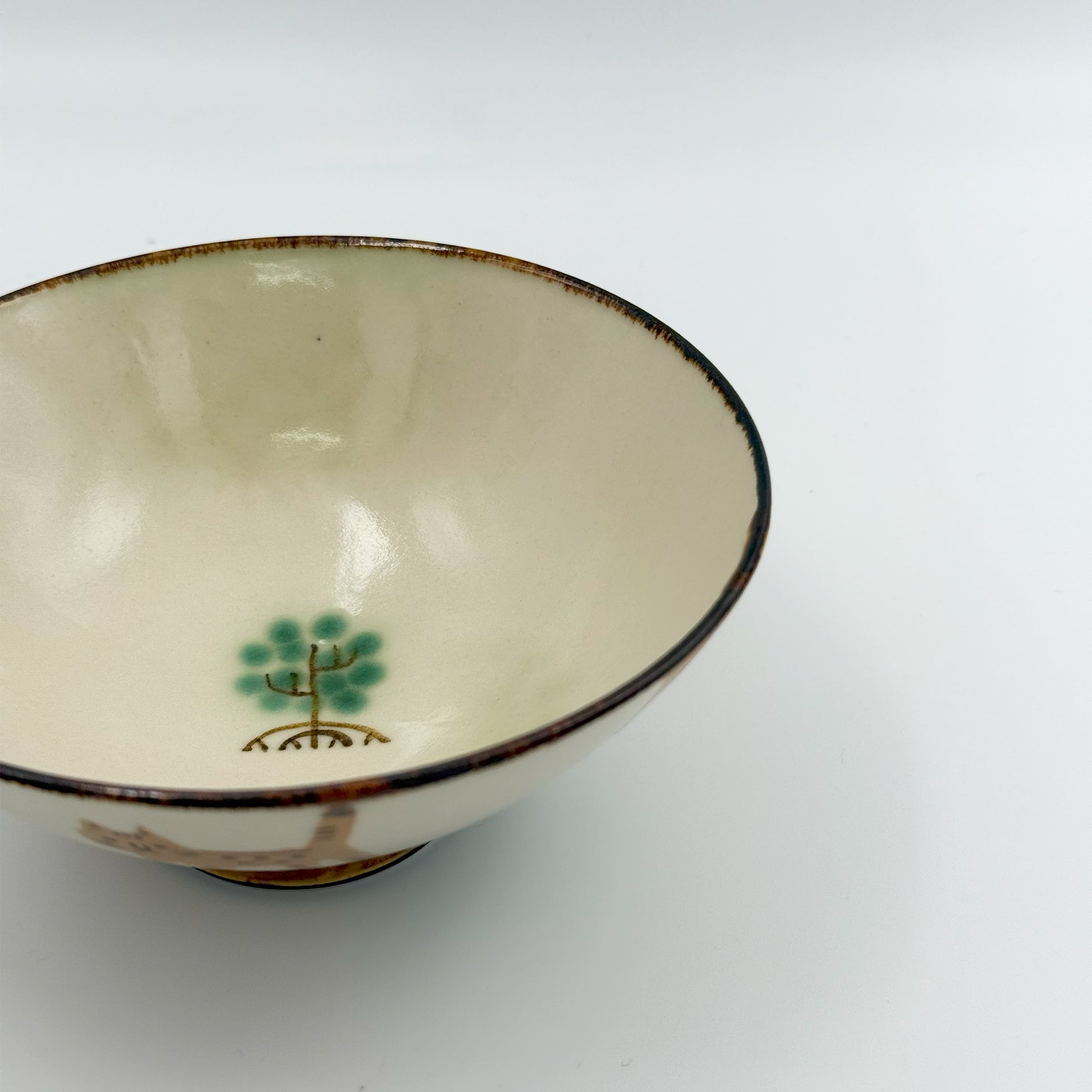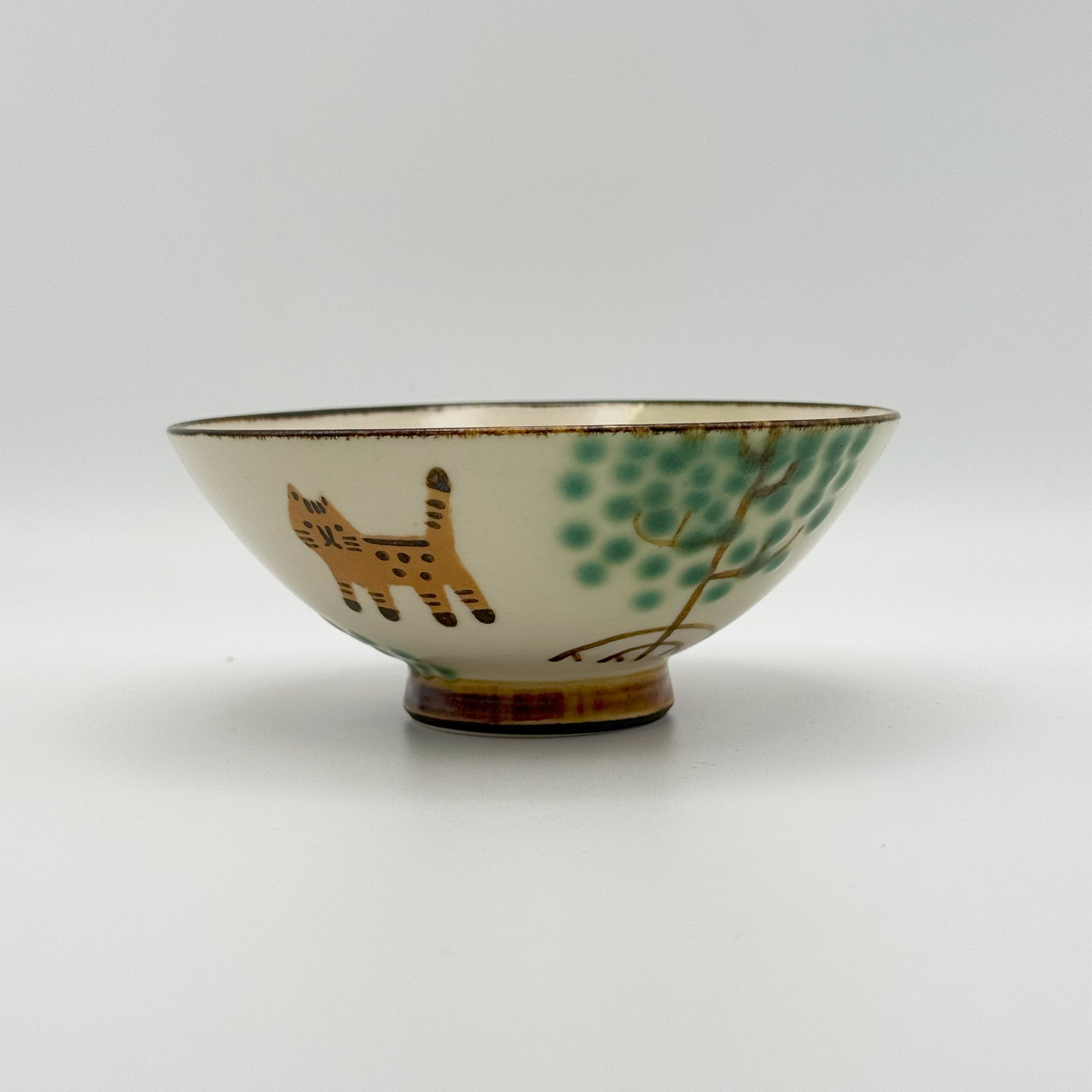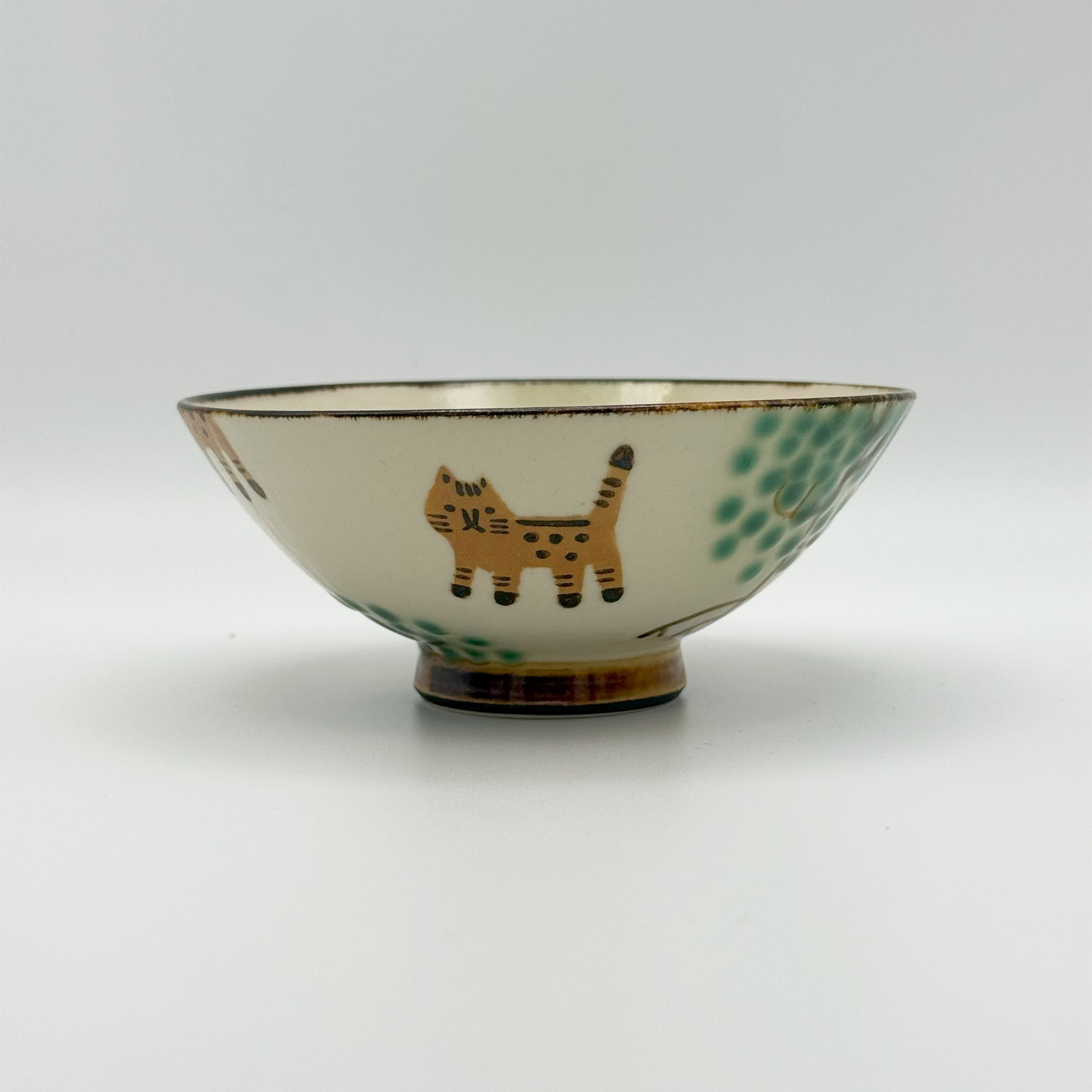 沖縄を中心に活動している陶芸工房”アトリエクッチャネ”。小ぶりなマカイ(お椀)。お子様や女性にぴったりの大きさです。内側の底面にもワンポイントで絵柄が描かれていて、食後も楽しみになる器です。