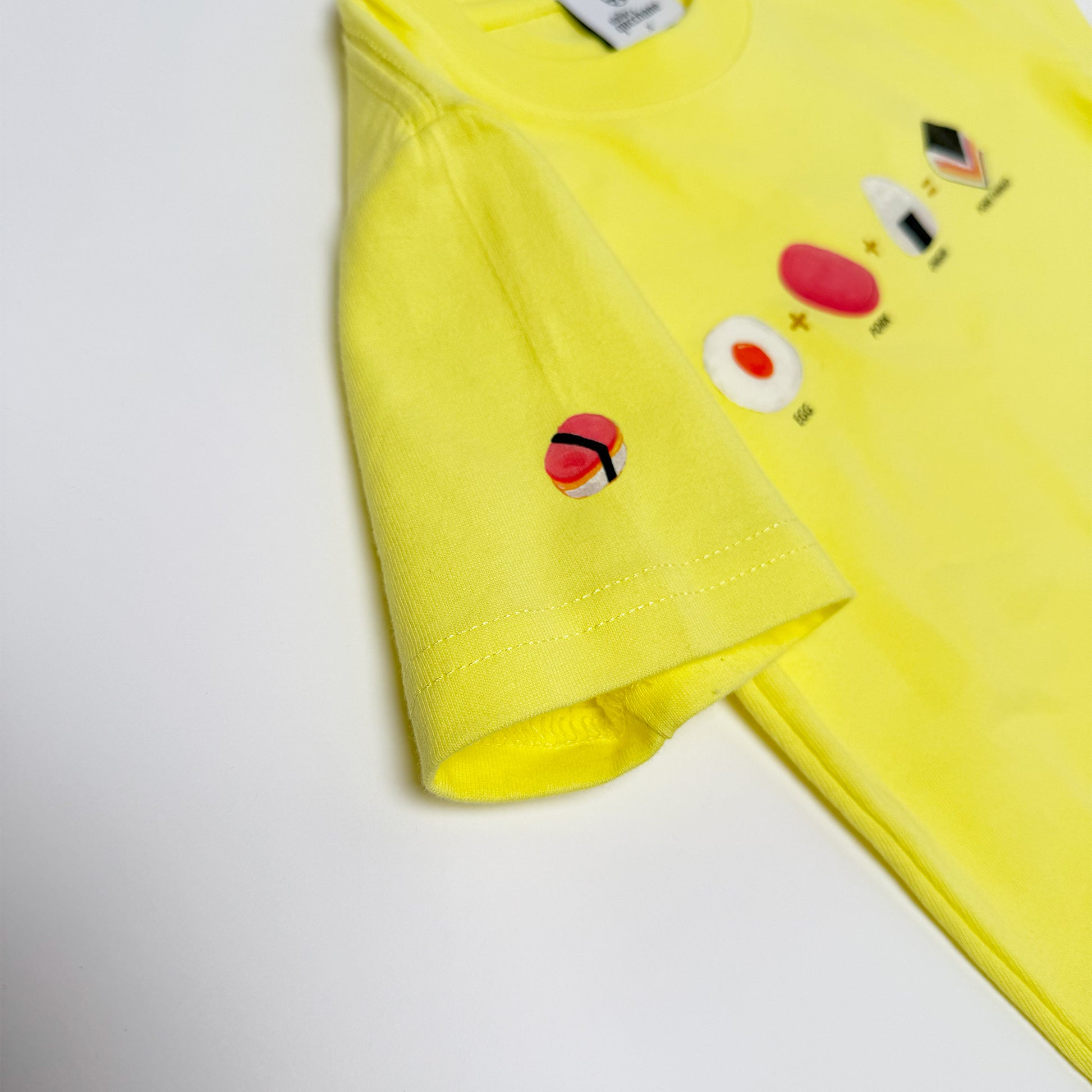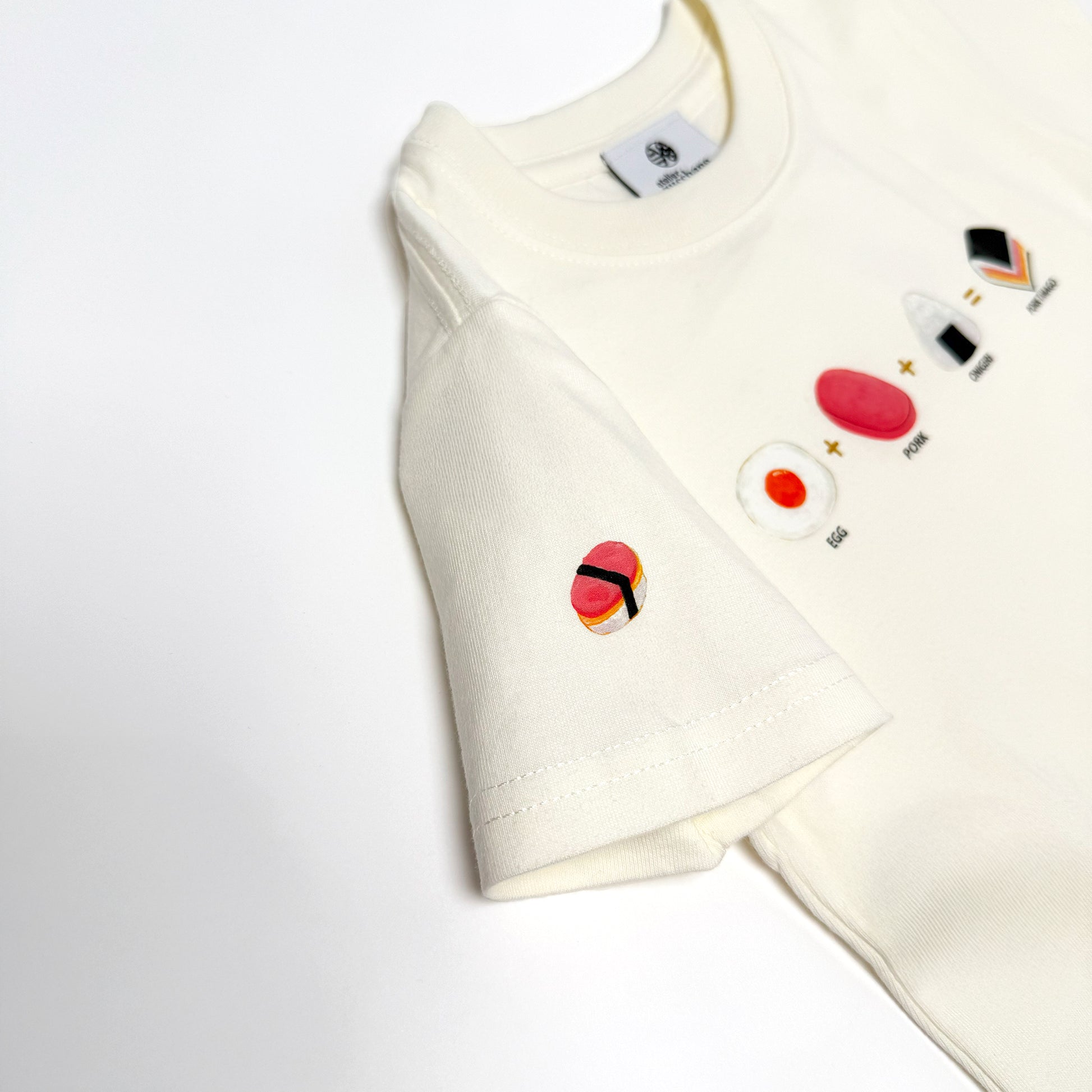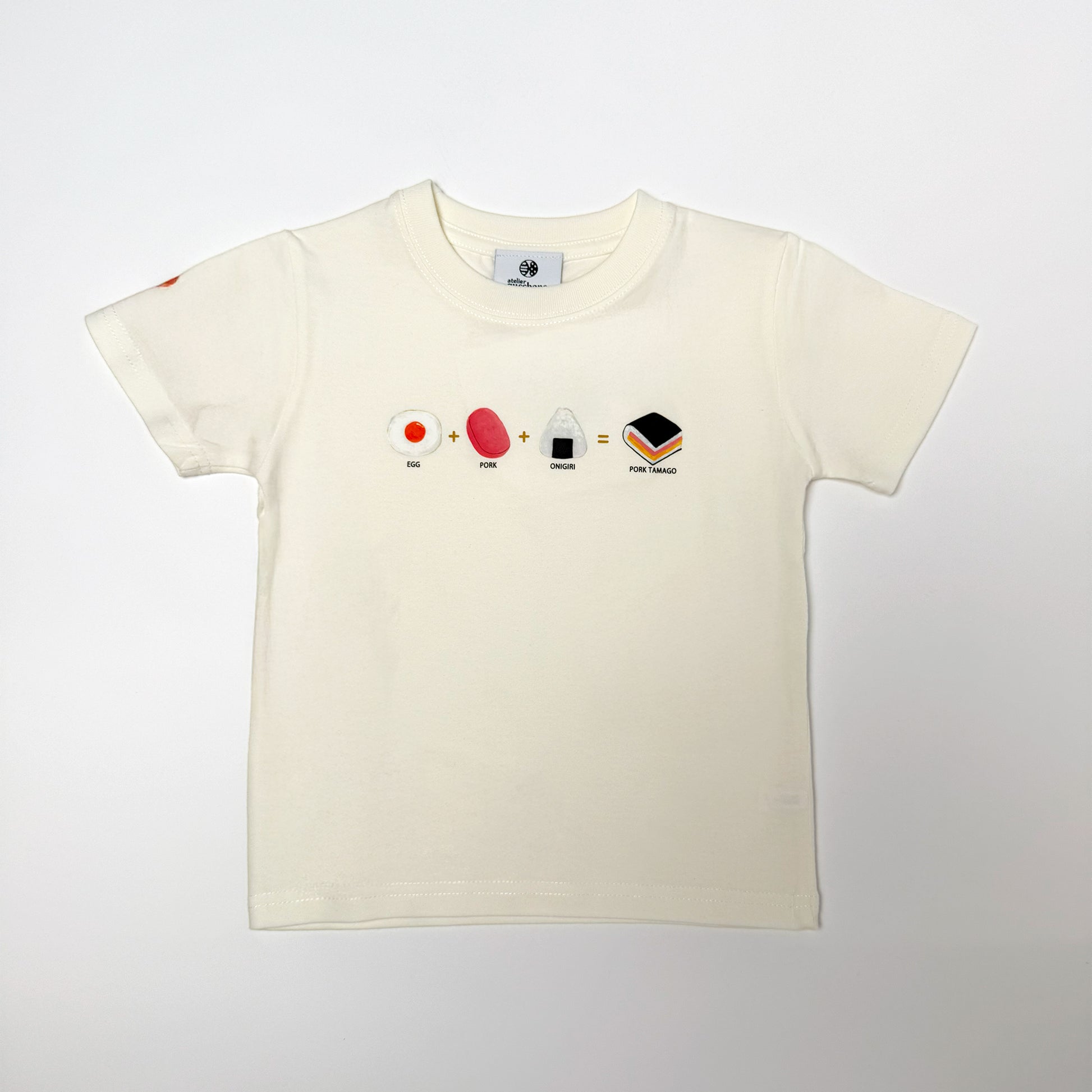 沖縄を中心に活動している陶芸工房”アトリエクッチャネ”と沖縄南風堂がコラボ。アトリエクッチャネの可愛らしいモチーフをグッズにしました。沖縄のオリジナルフード「ポー玉」ができる過程を足し算にしてみました。右袖のワンポイントも可愛らしいです。サイズはユニセックス。親子でお揃いもおススメです。