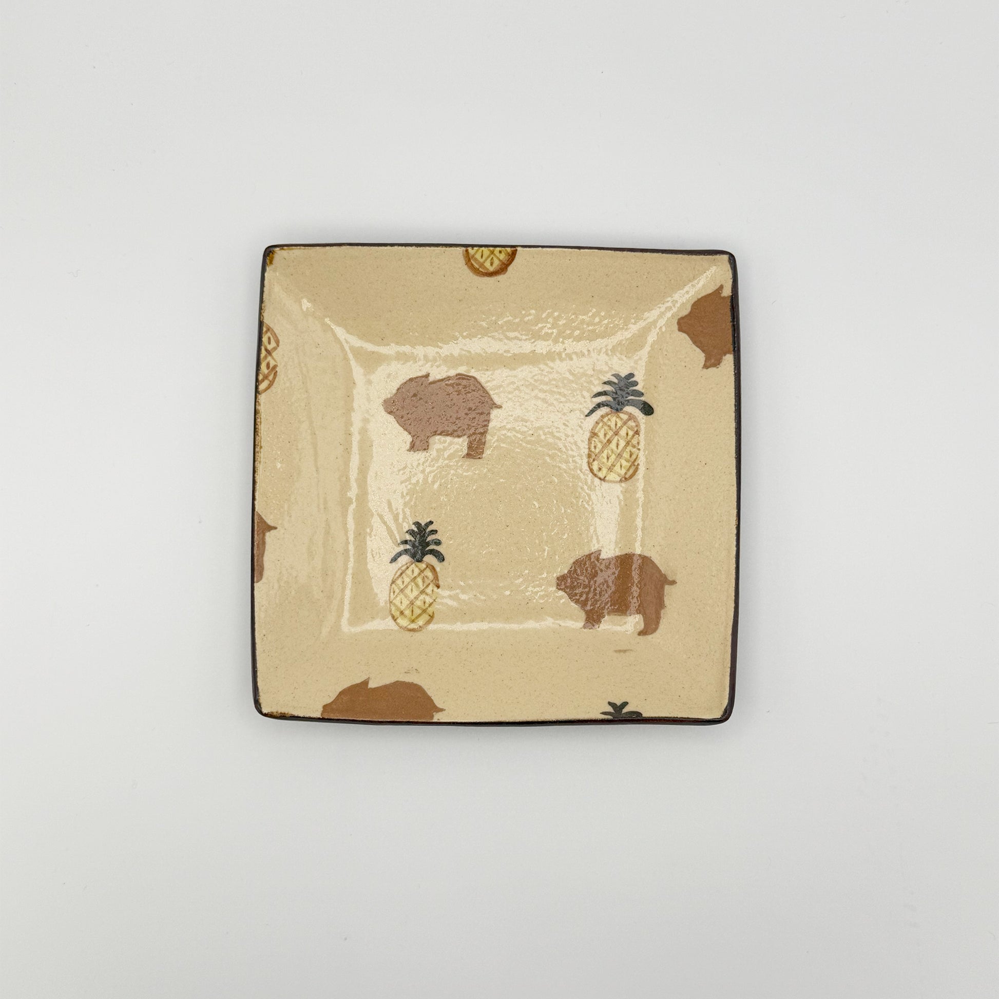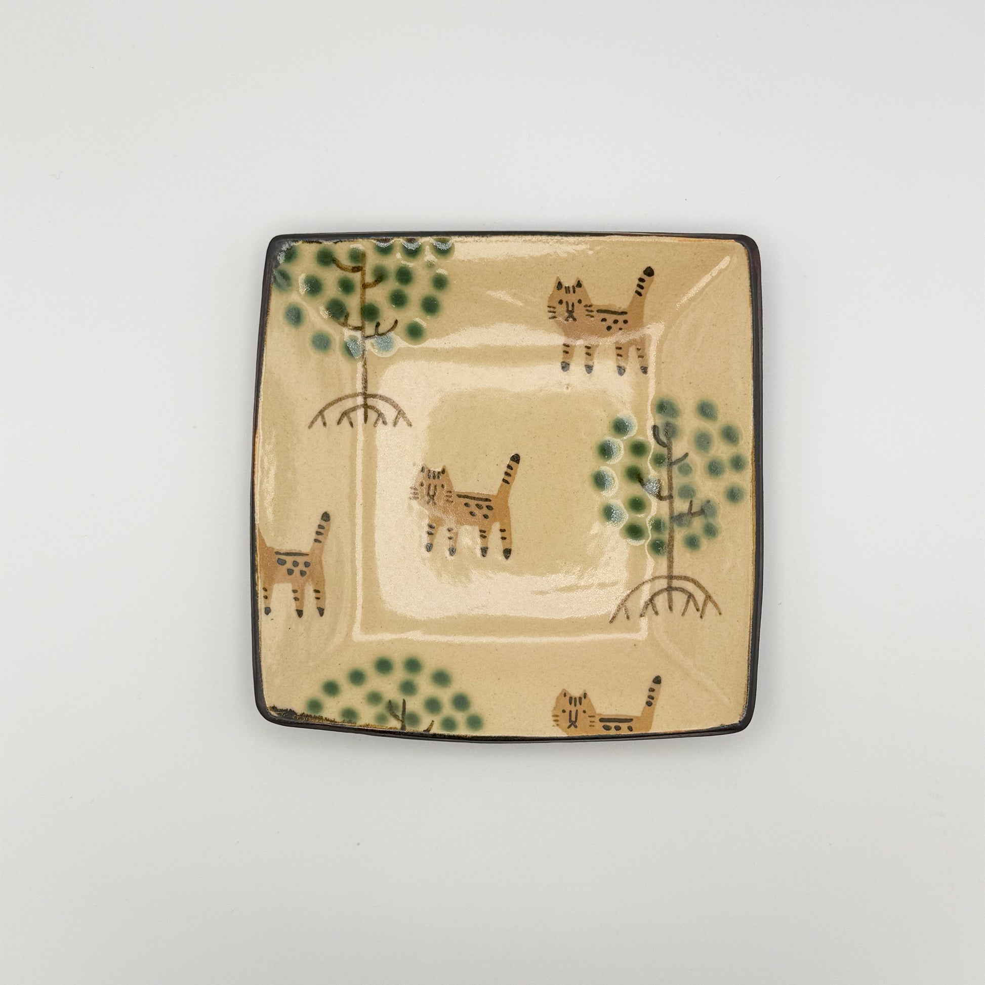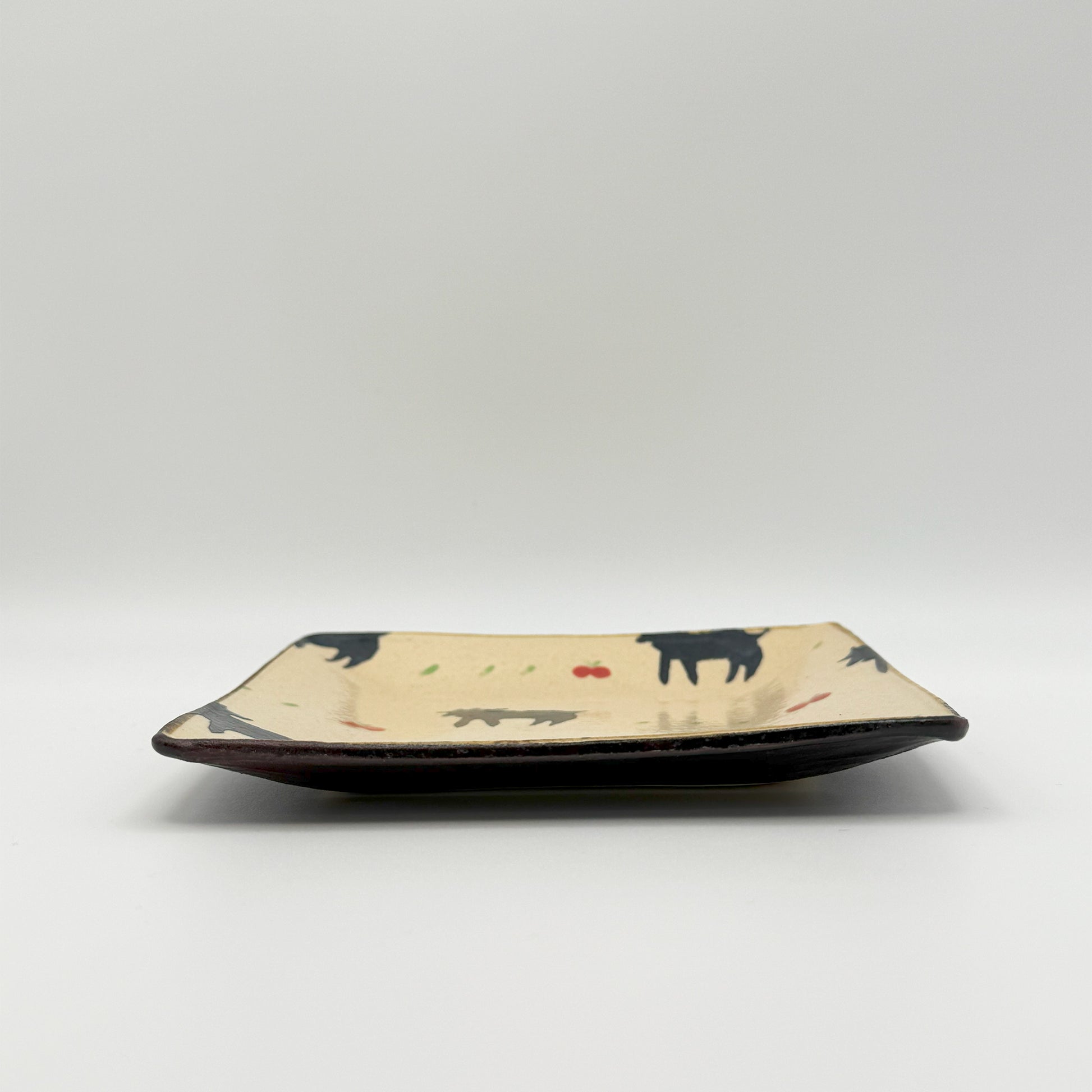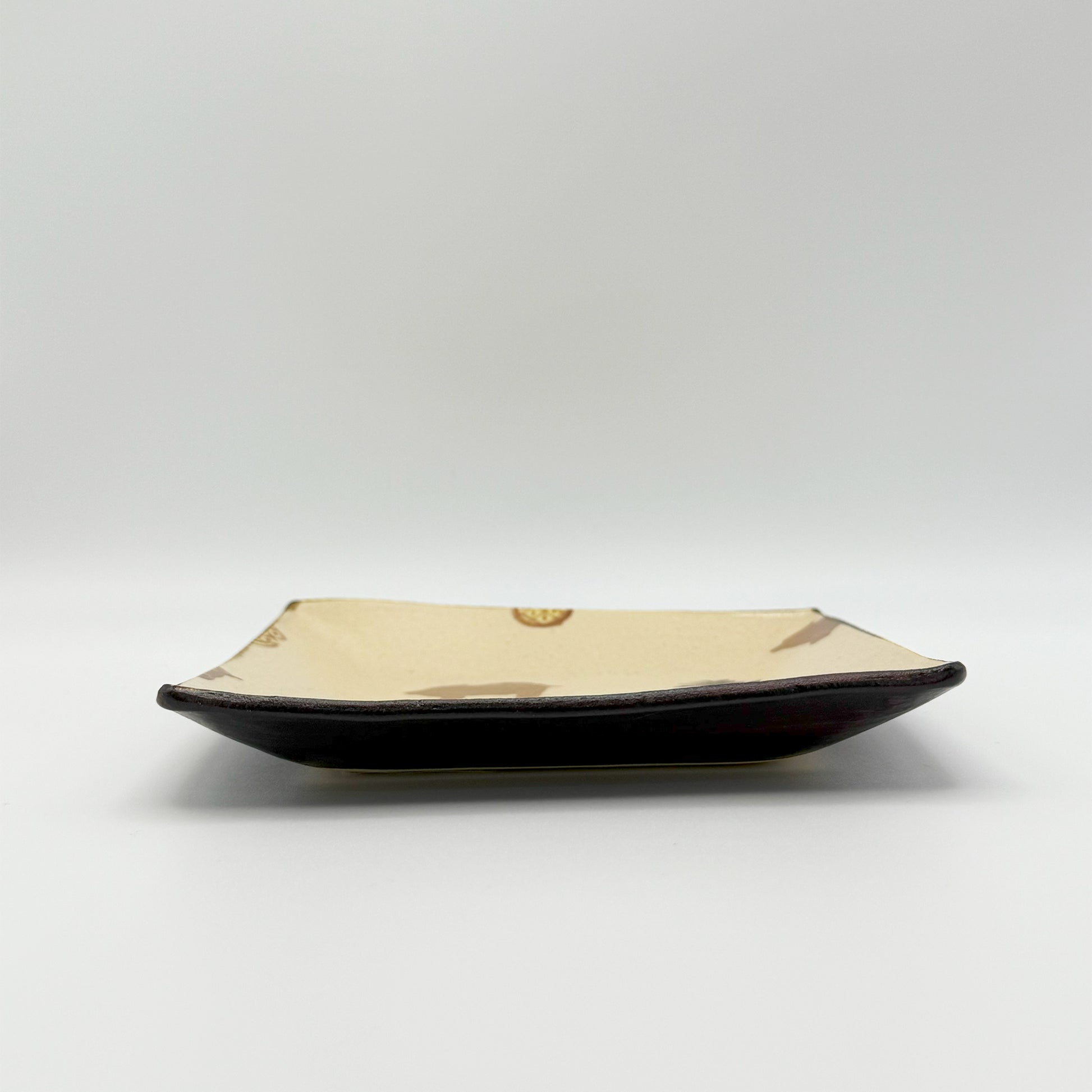 沖縄を中心に活動している陶芸工房”アトリエクッチャネ”。使いやすいサイズの角皿。ケーキなどにピッタリです。