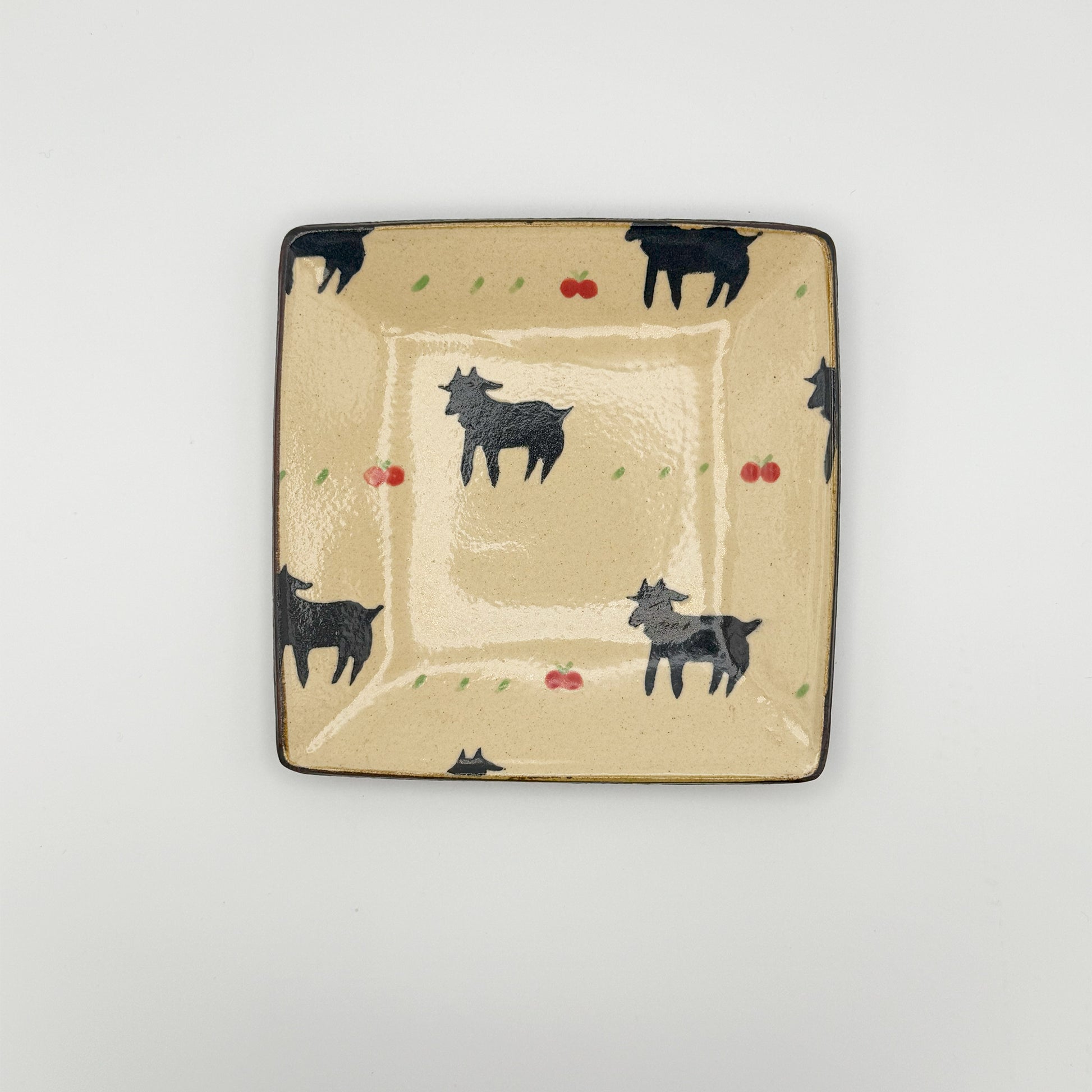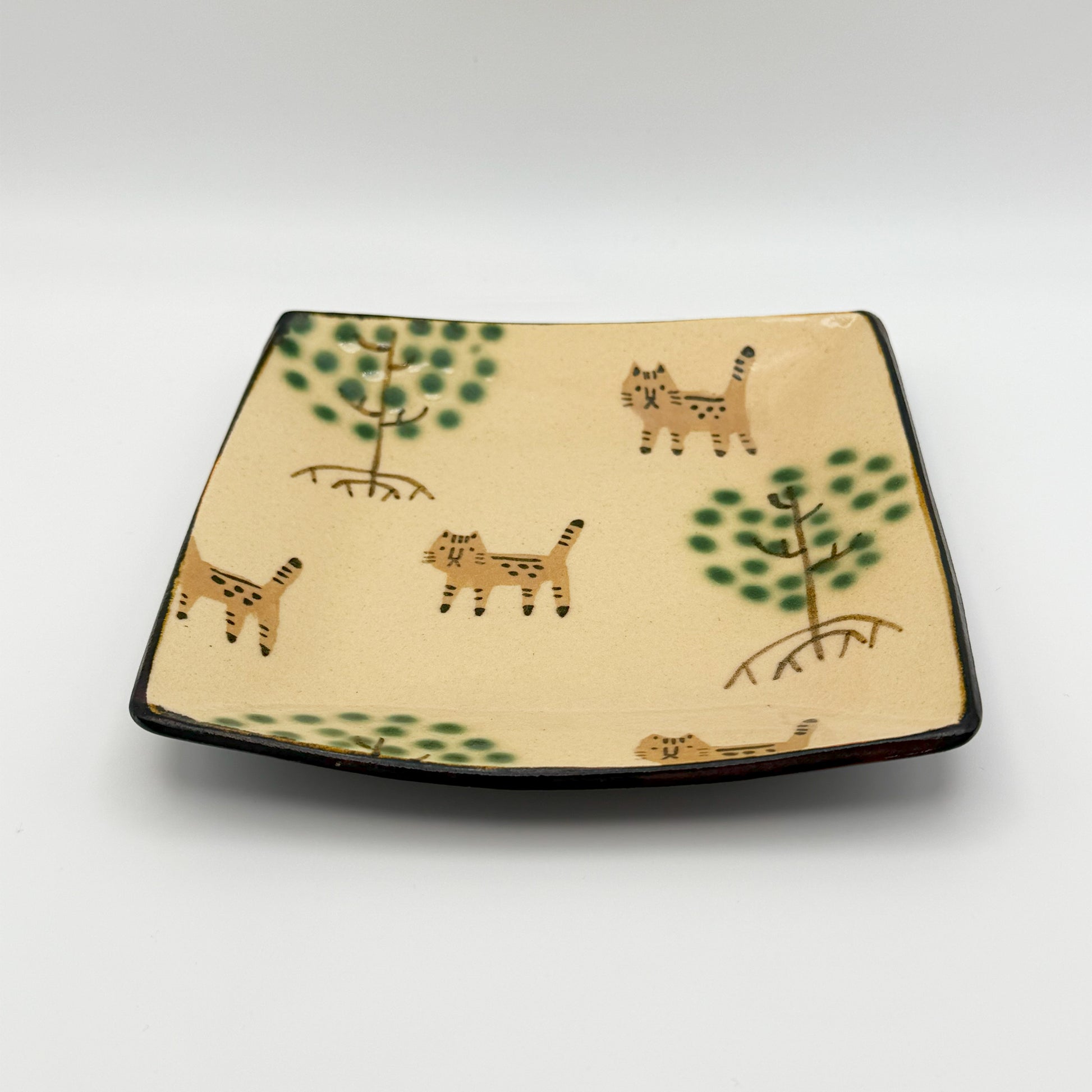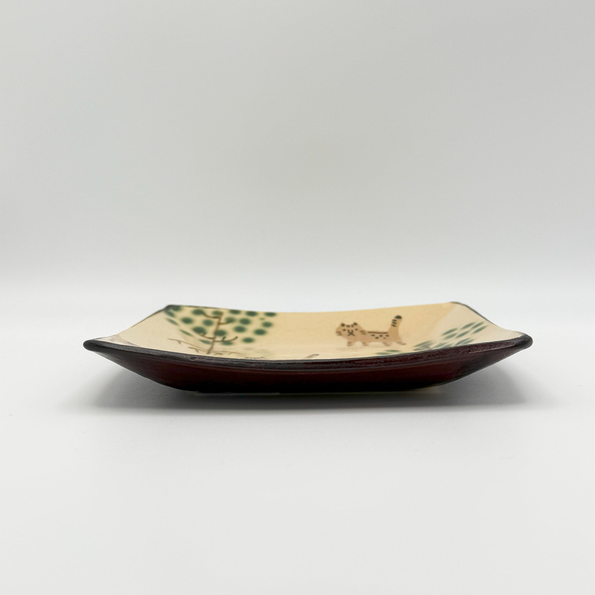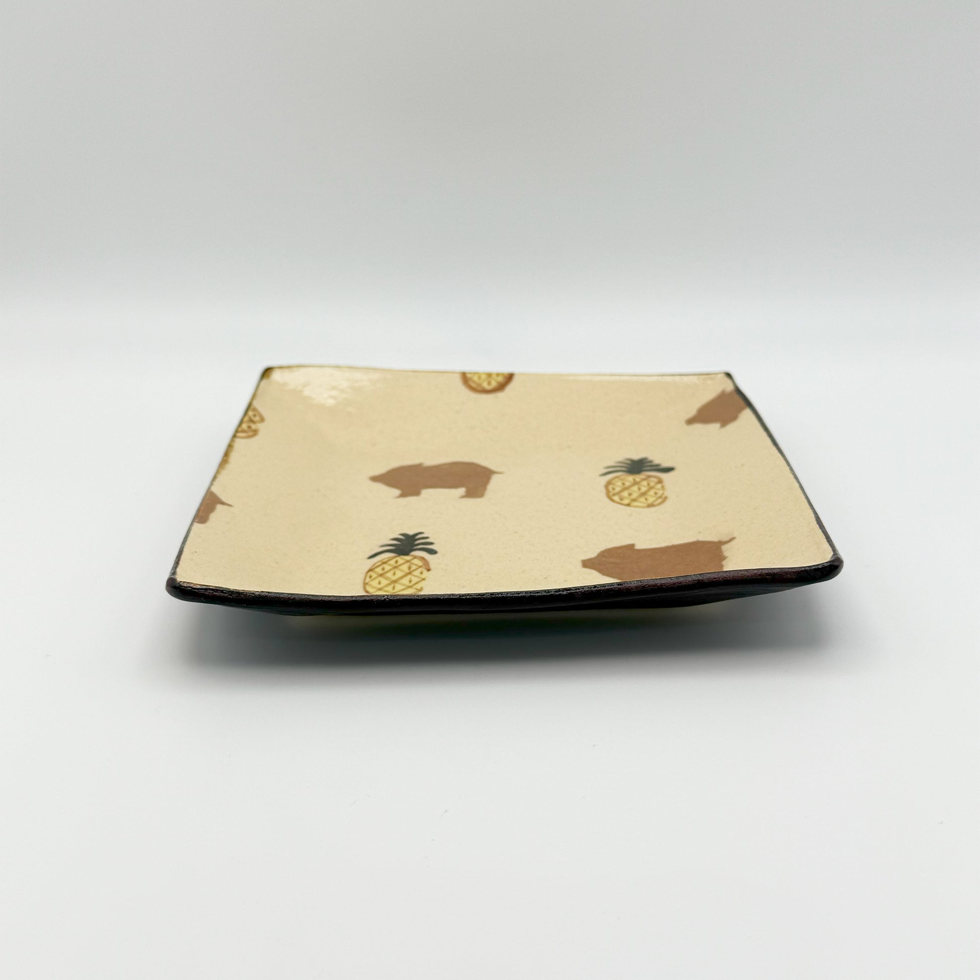 沖縄を中心に活動している陶芸工房”アトリエクッチャネ”。使いやすいサイズの角皿。ケーキなどにピッタリです。