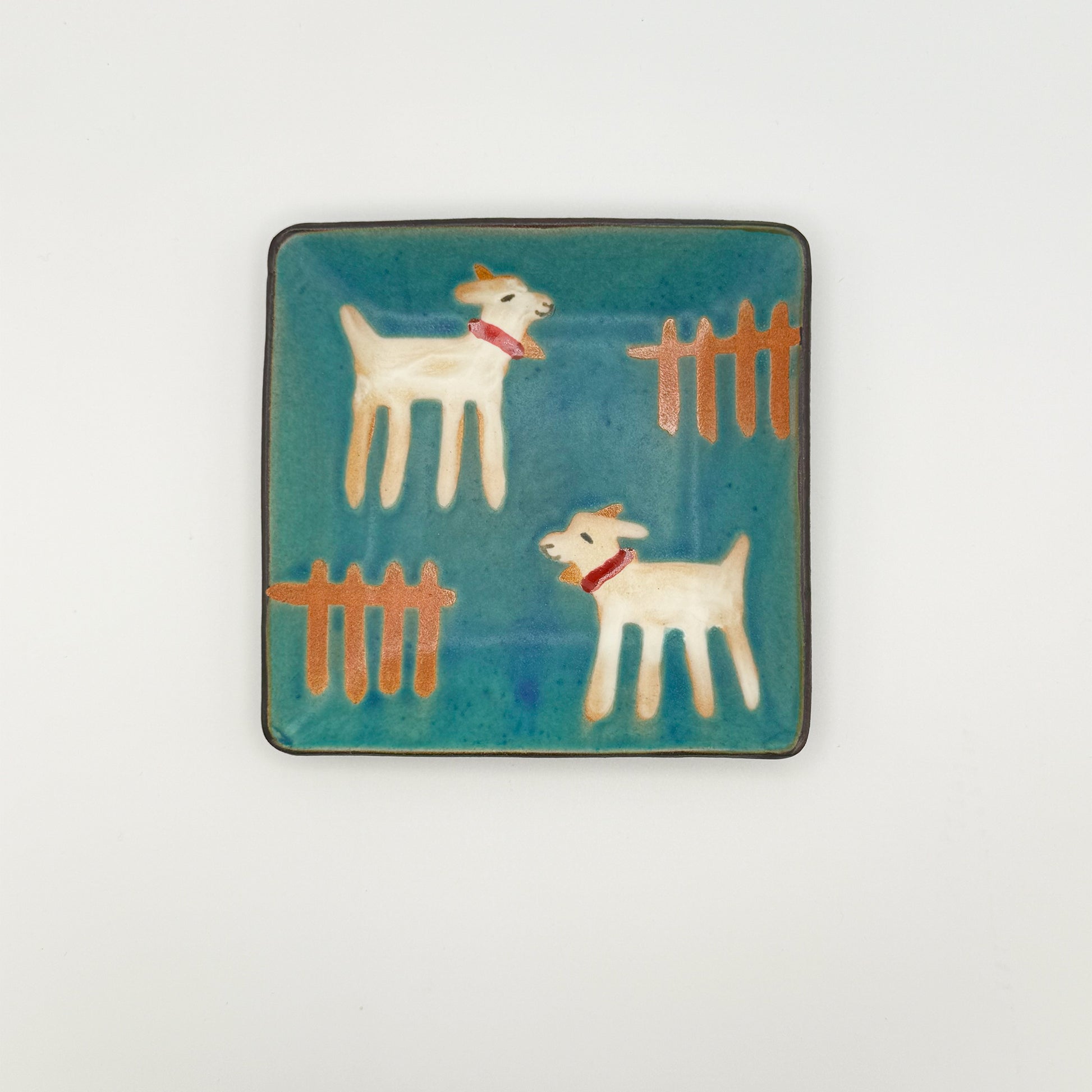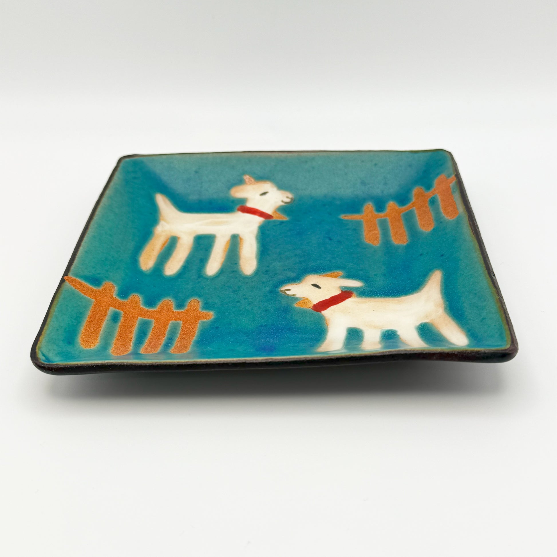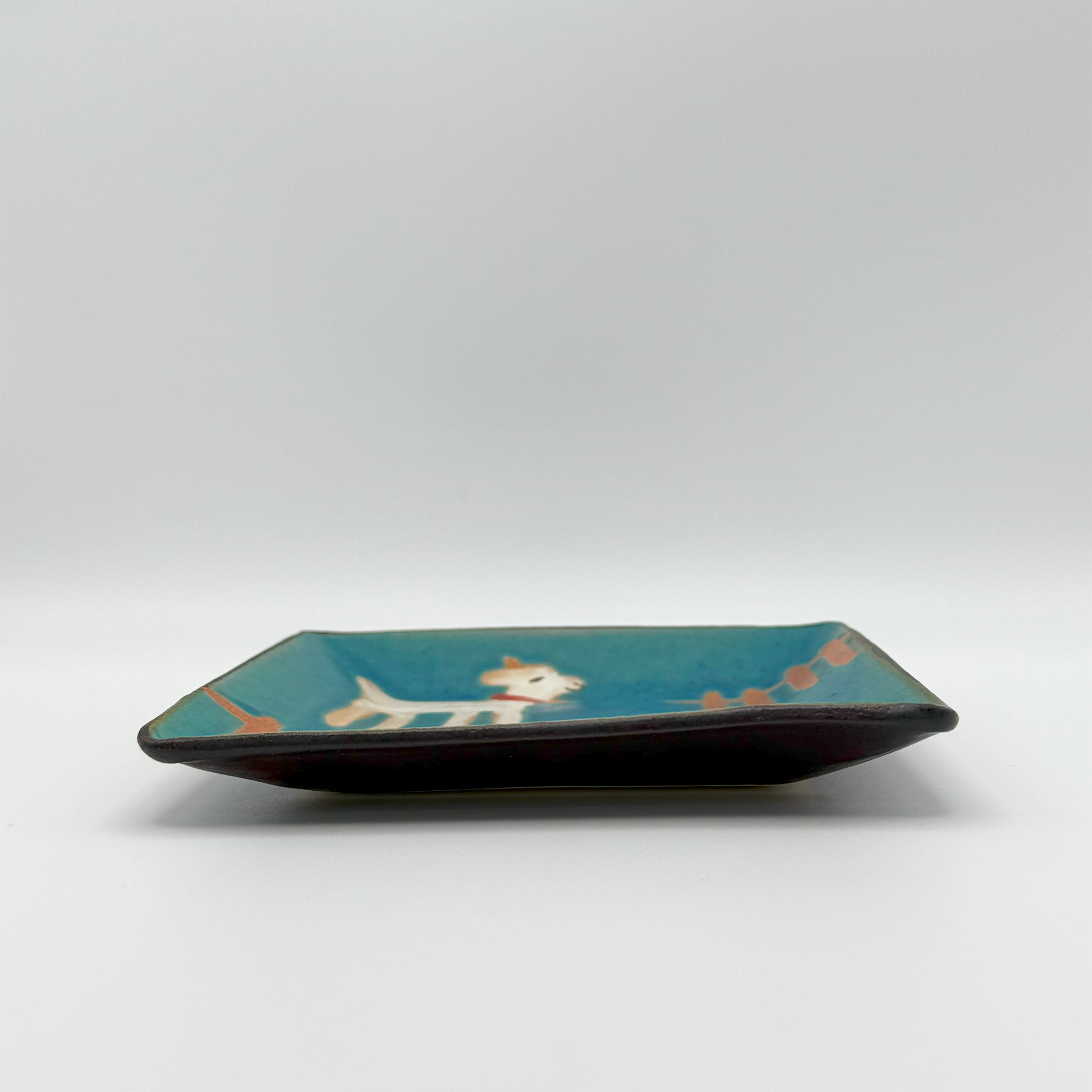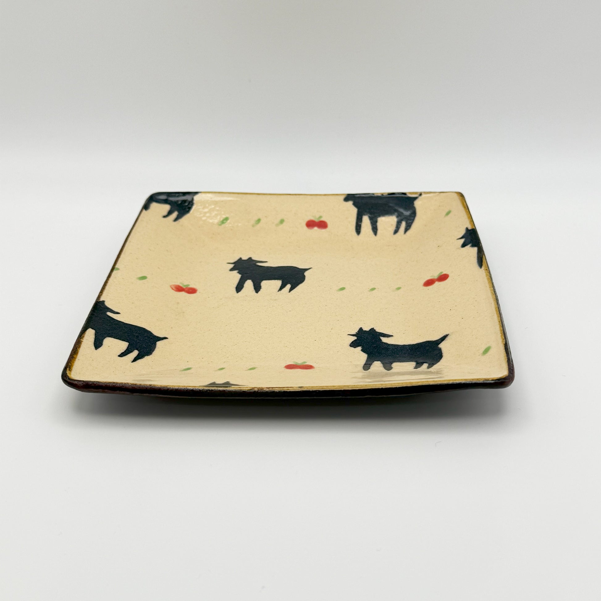 沖縄を中心に活動している陶芸工房”アトリエクッチャネ”。使いやすいサイズの角皿。ケーキなどにピッタリです。