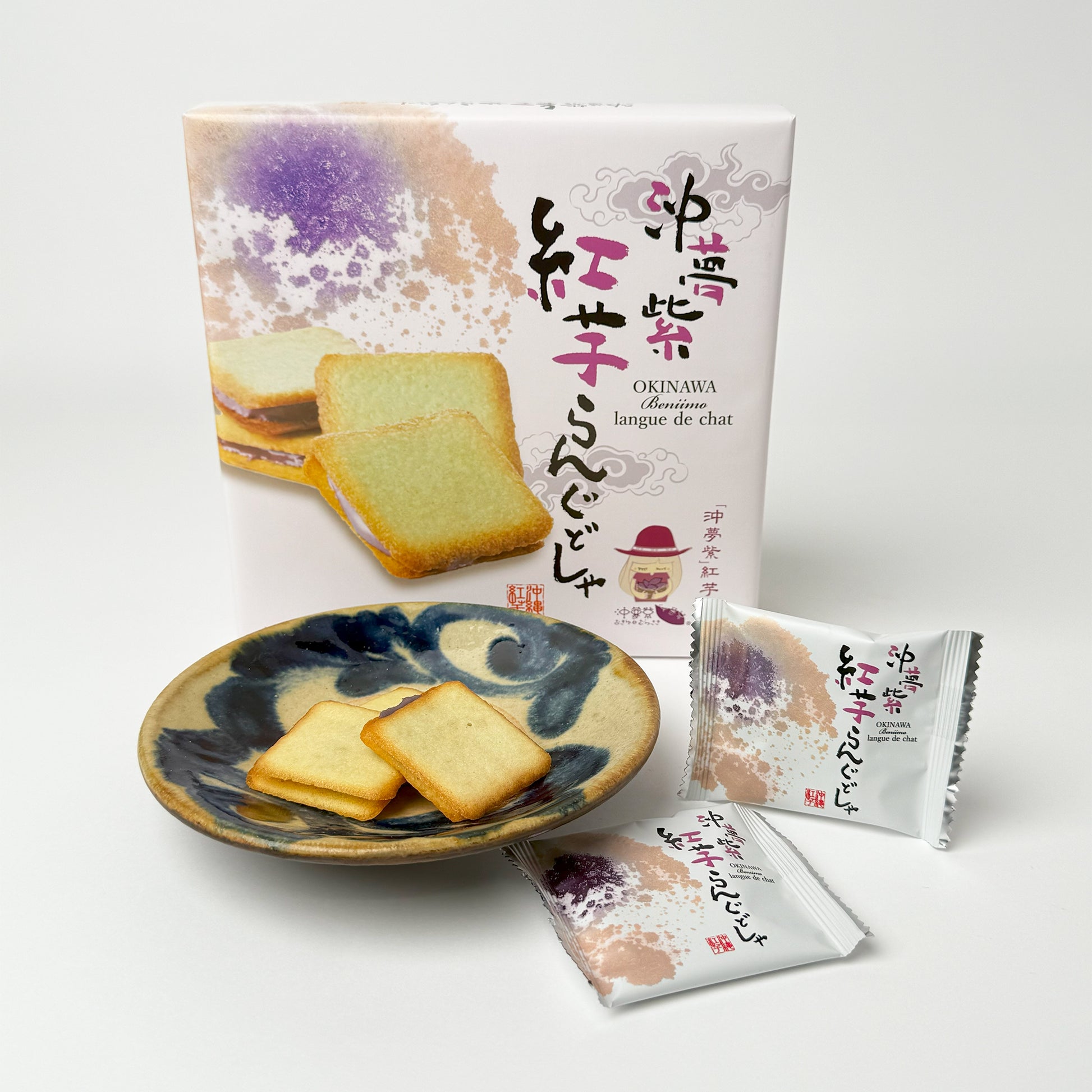香ばしく焼き上げたラングドシャ生地に石垣島産の紅芋「沖夢紫」を使用したクリームをサンドしました。風味豊かで優しい甘さが特徴です。