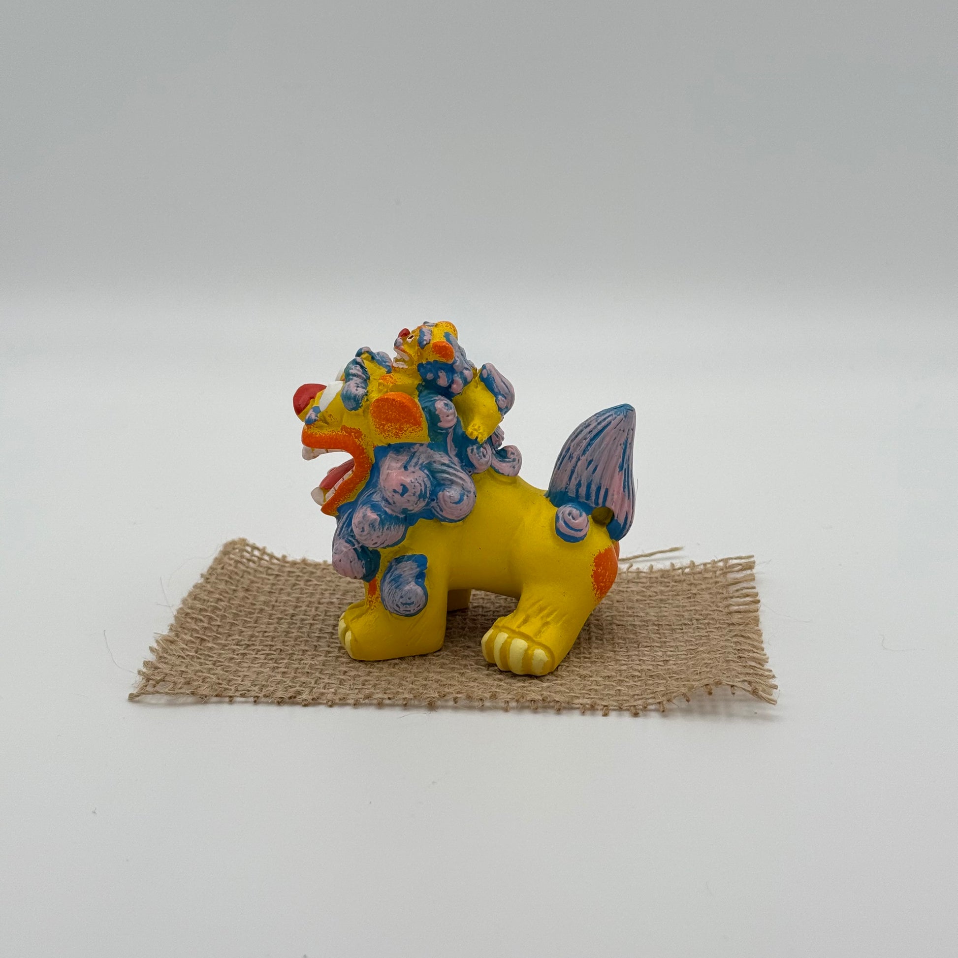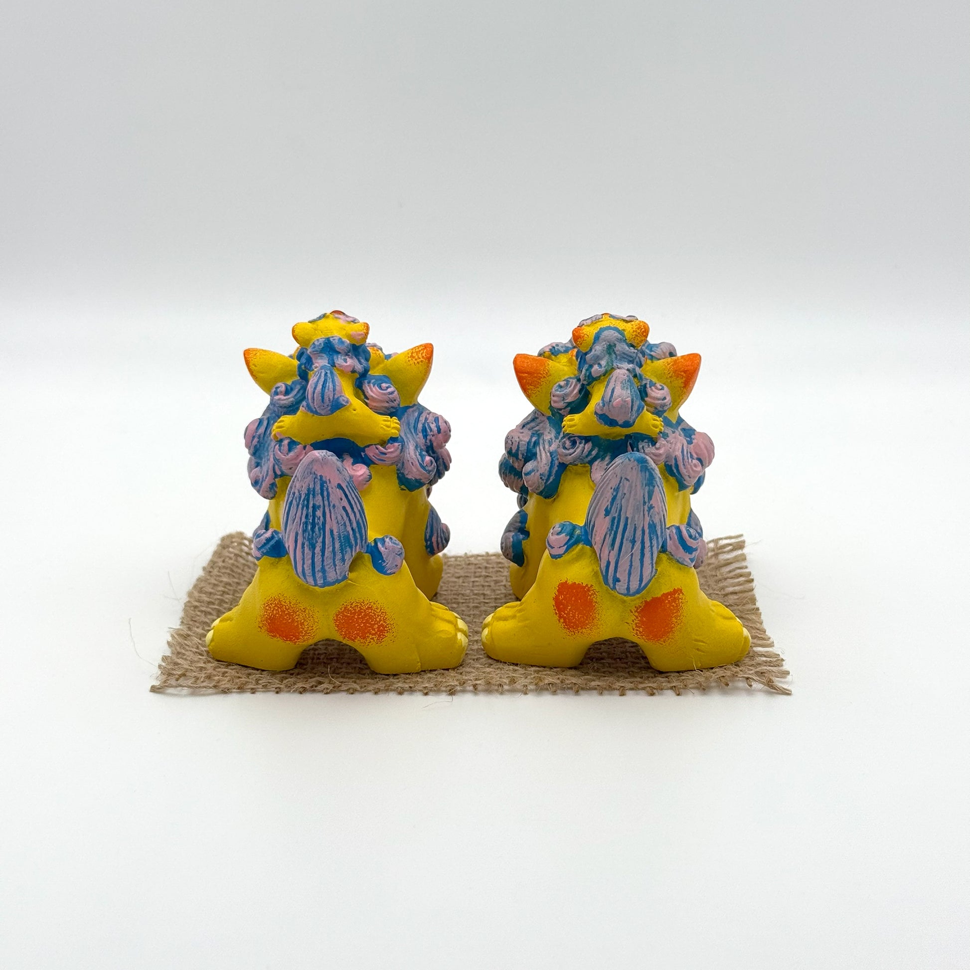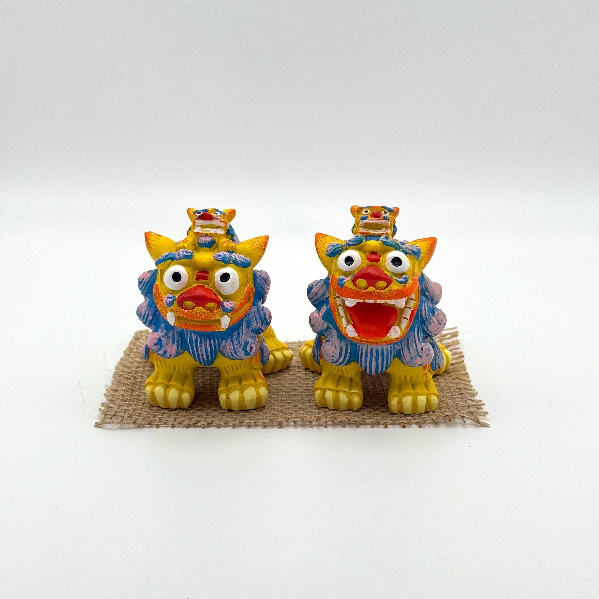 シーサー(1つのサイズ):高さ 約7cm×横 約6cm×奥行 約8.5cm 、マット:縦7.5cm×横13cm