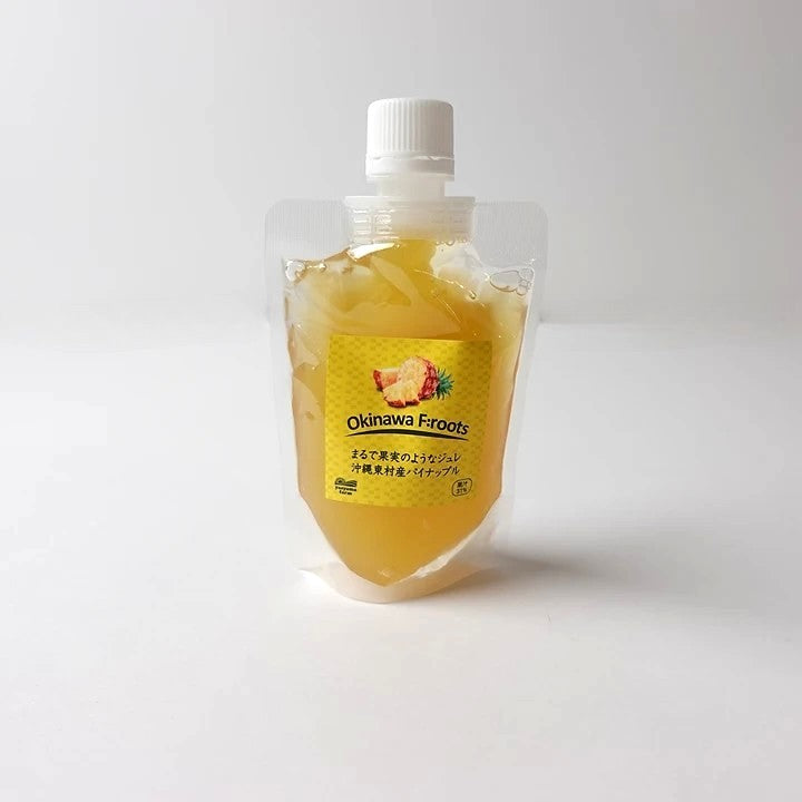 沖縄県東村パイナップルは、日本一の生産量を誇り大切に栽培されております。その中でも樹熟・完熟パイナップルの果肉をジュレに閉じ込めました。
