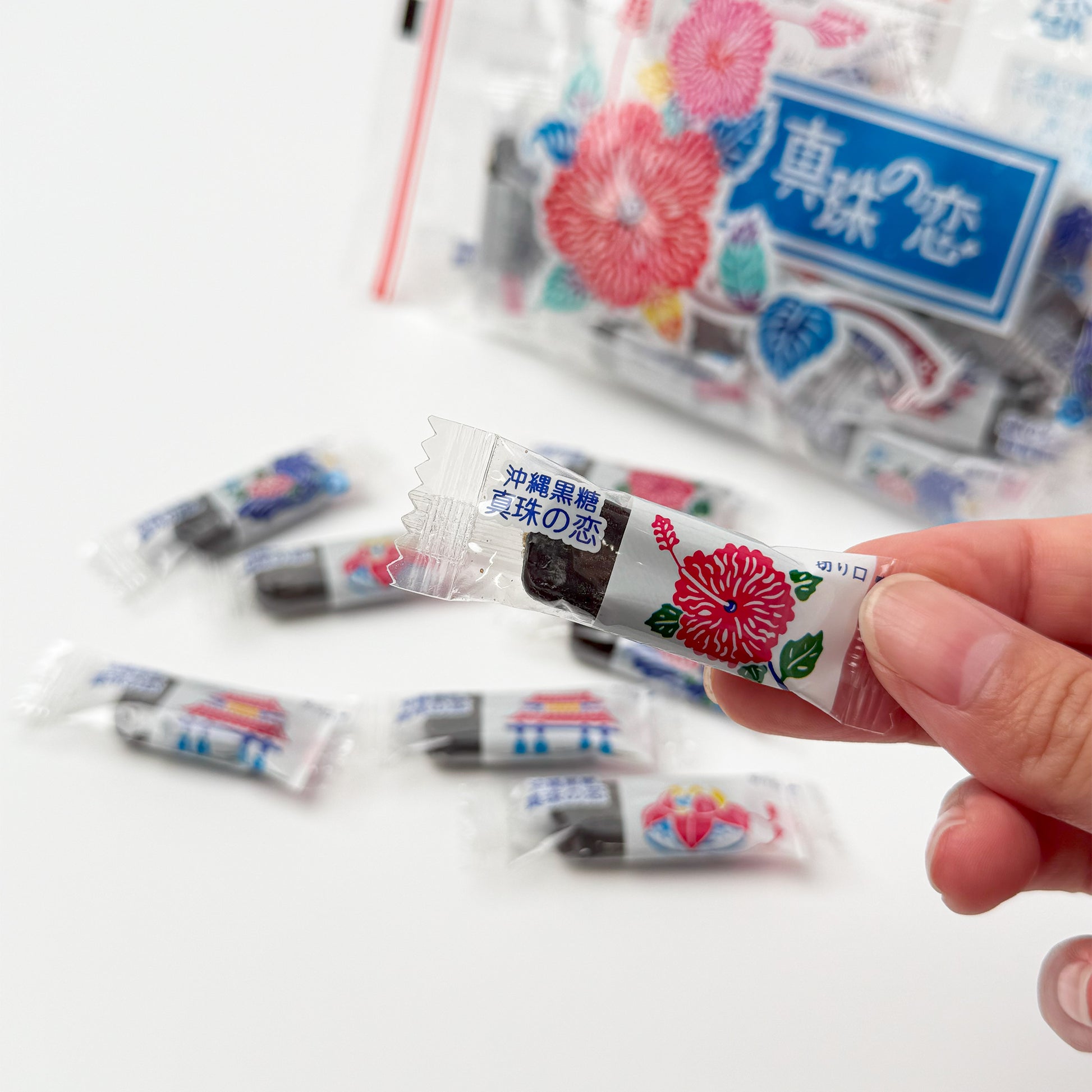 クセになる美味しさ、レトロなパッケージ、そして粋なネーミングでじわじわと人気を高めてきています。黒糖の中からホワイトチョコがトロリと出てきます。個包装のパッケージは沖縄を代表するイラスト4種類。ばらまきのお土産にもぴったりな商品です。