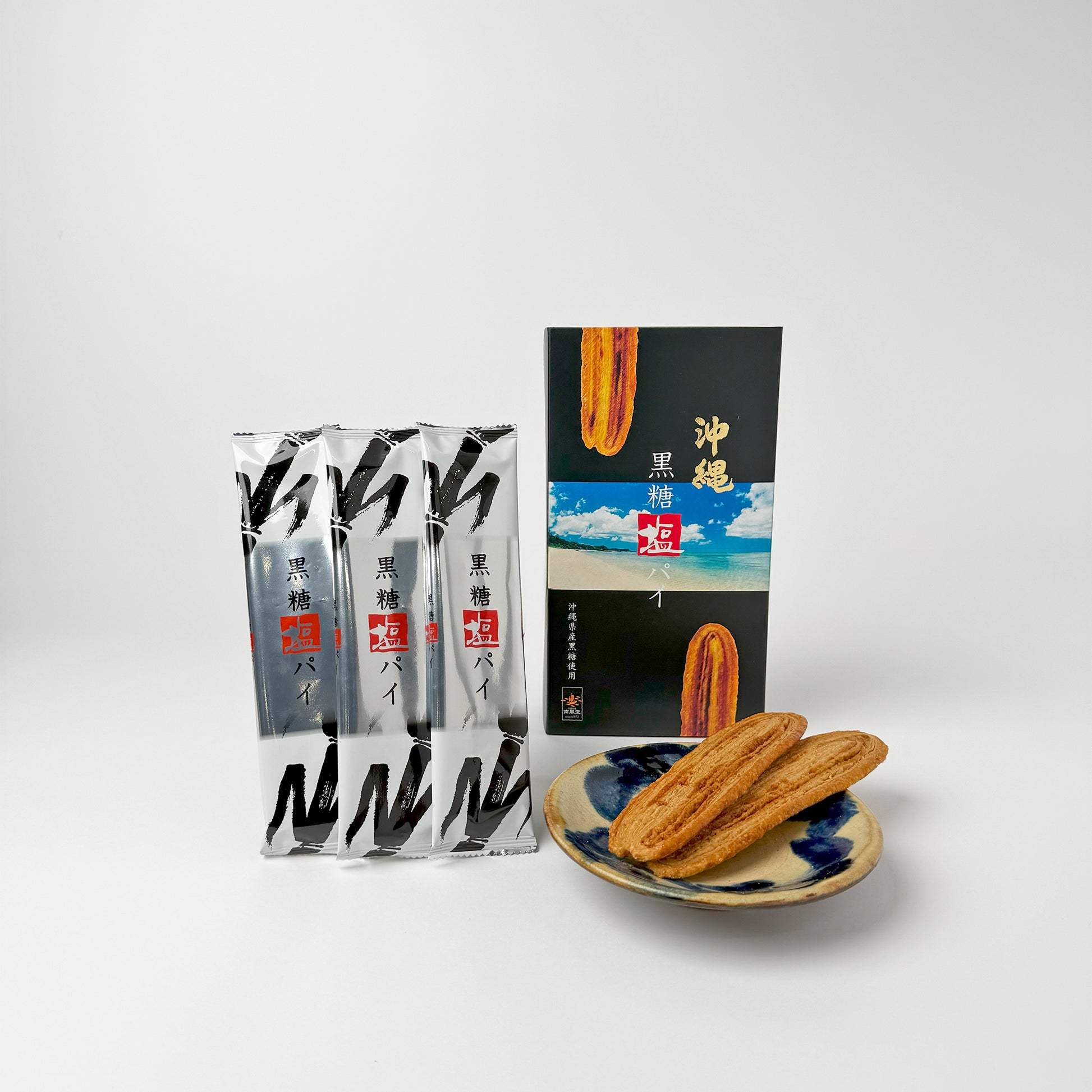 沖縄県産黒糖を使用したロングパイです。ほんのり塩味がクセになります。
