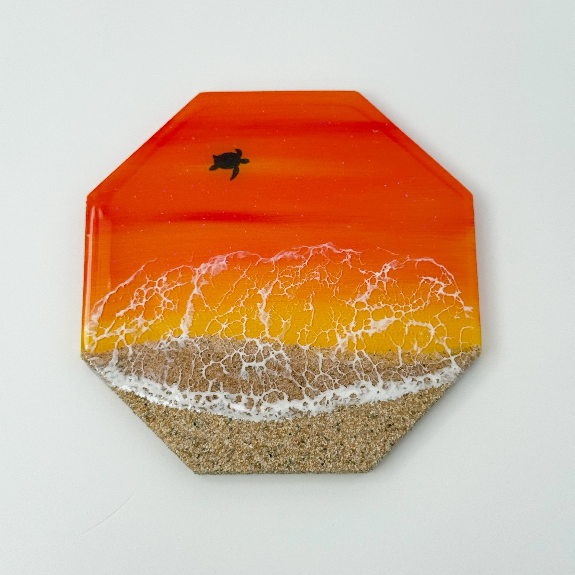 エコポキシーレジンを使用し、石垣島で作成した海アートです。エコポキシーレジンは、大豆の油をベースに植物由来の成分でつくられており、環境にやさしいとされ、安心してお使い頂けます。ひとつひとつ丁寧に手作りしているので、商品は全てオンリーワン。