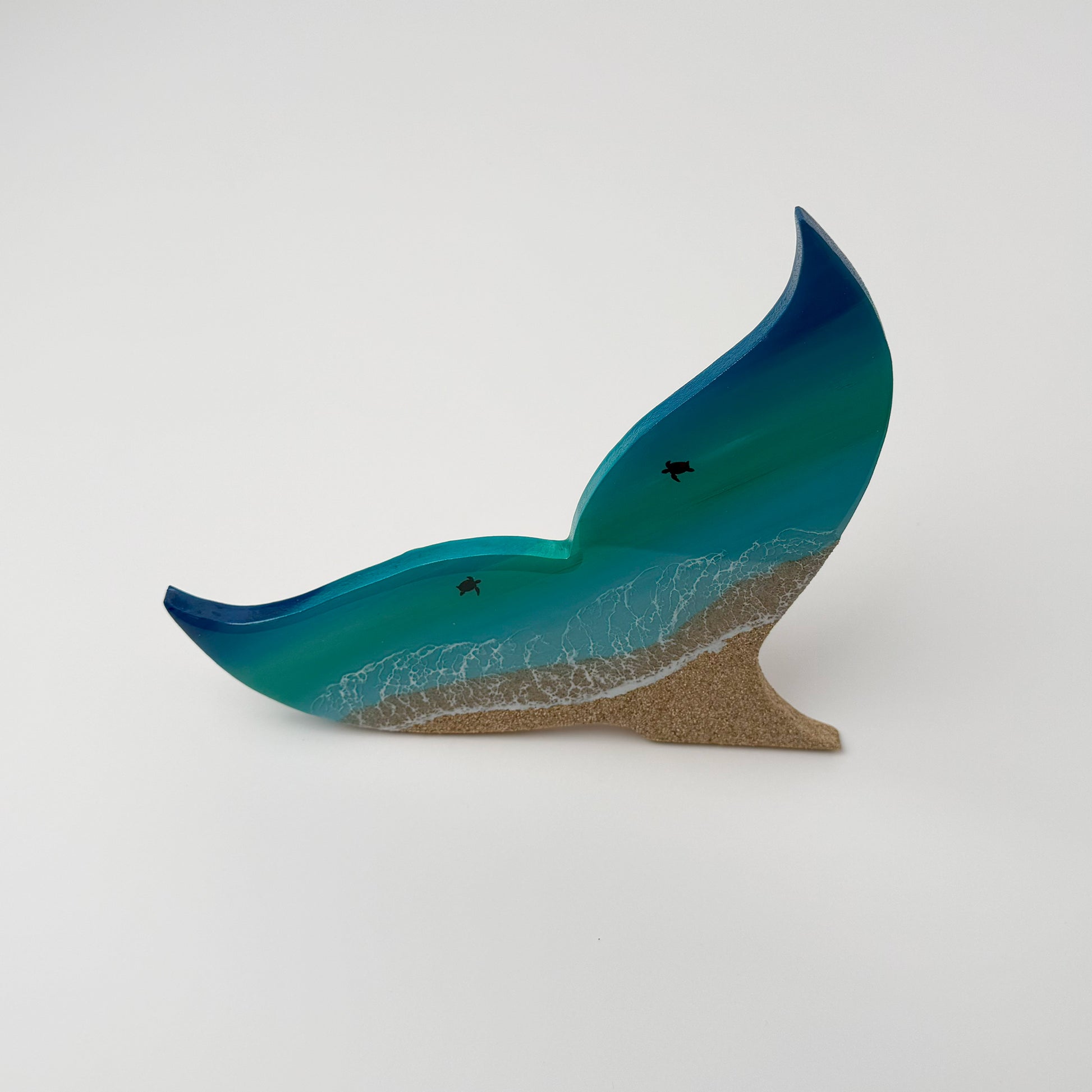 エコポキシーレジンを使用し、石垣島で作成した海アートです。エコポキシーレジンは、大豆の油をベースに植物由来の成分でつくられており、環境にやさしいとされ、安心してお使い頂けます。ひとつひとつ丁寧に手作りしているので、商品は全てオンリーワン。贈り物にもぴったりです。ドルフィンテールが印象的なインテリアになります。
