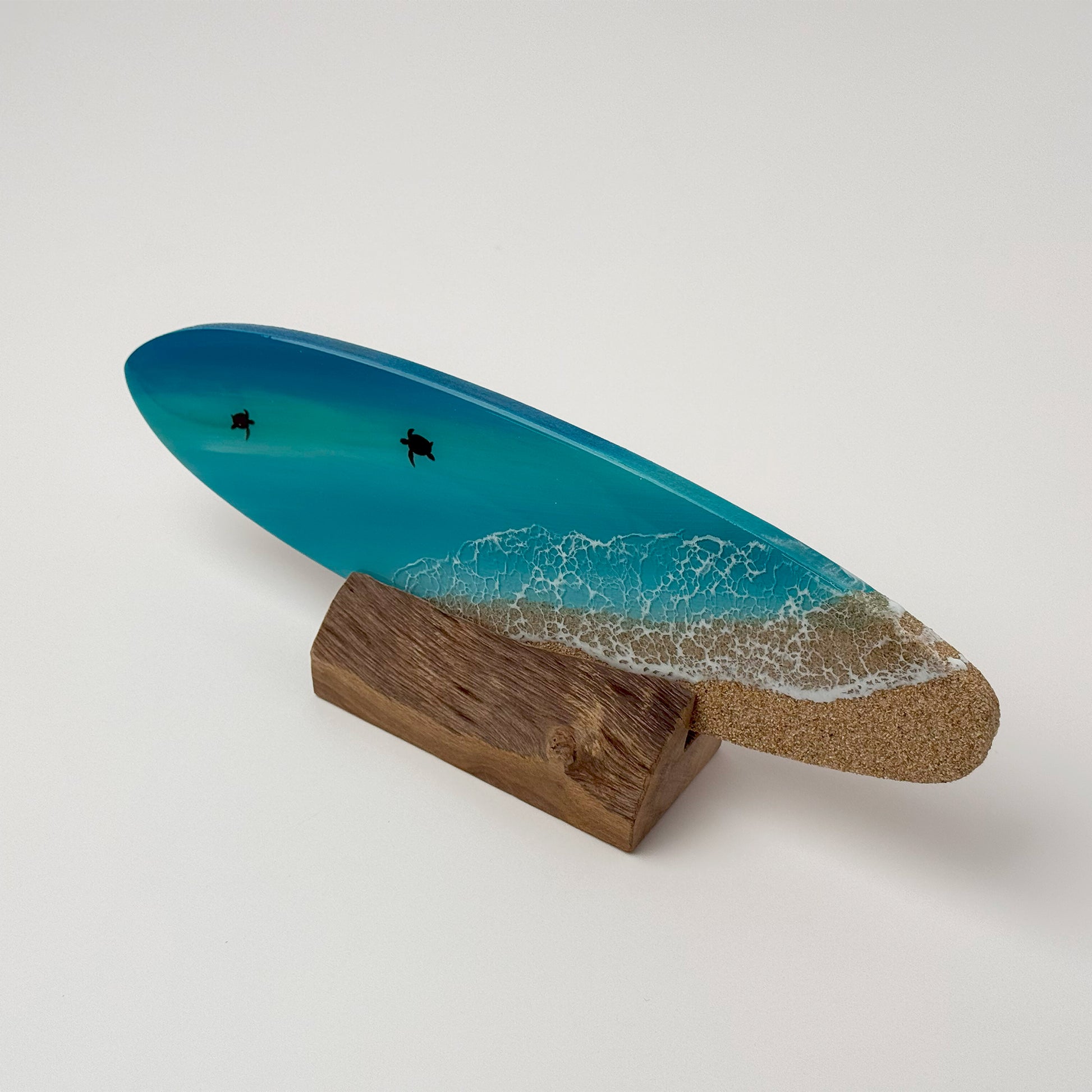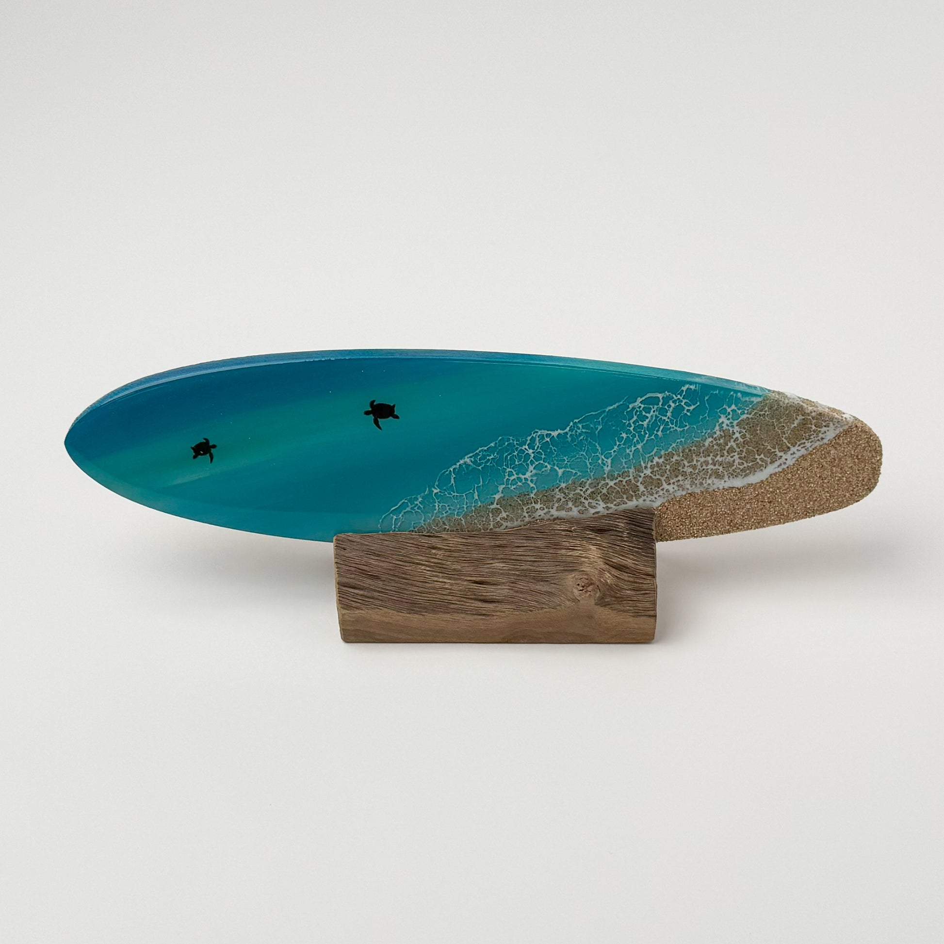 エコポキシーレジンを使用し、石垣島で作成した海アートです。エコポキシーレジンは、大豆の油をベースに植物由来の成分でつくられており、環境にやさしいとされ、安心してお使い頂けます。ひとつひとつ丁寧に手作りしているので、商品は全てオンリーワン。贈り物にもぴったりです。流木の土台付き。
