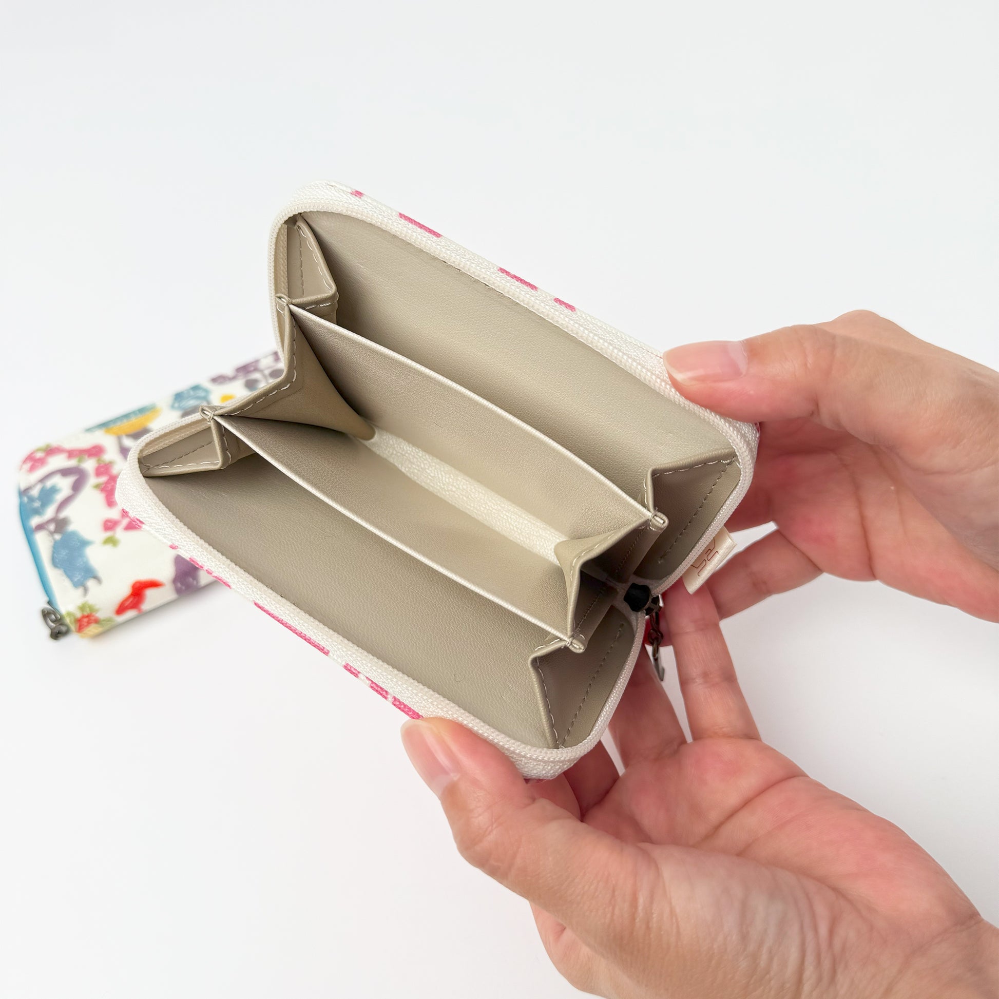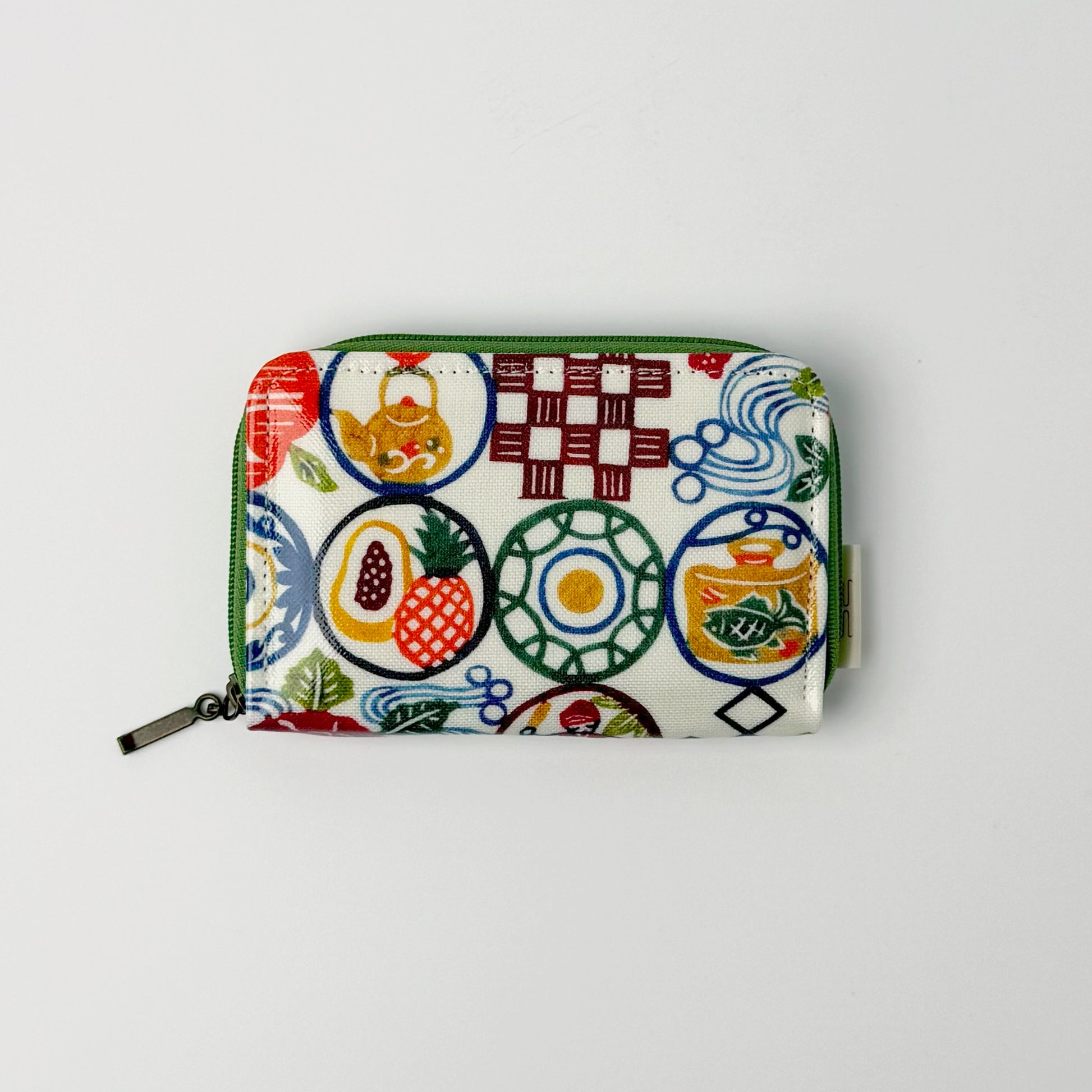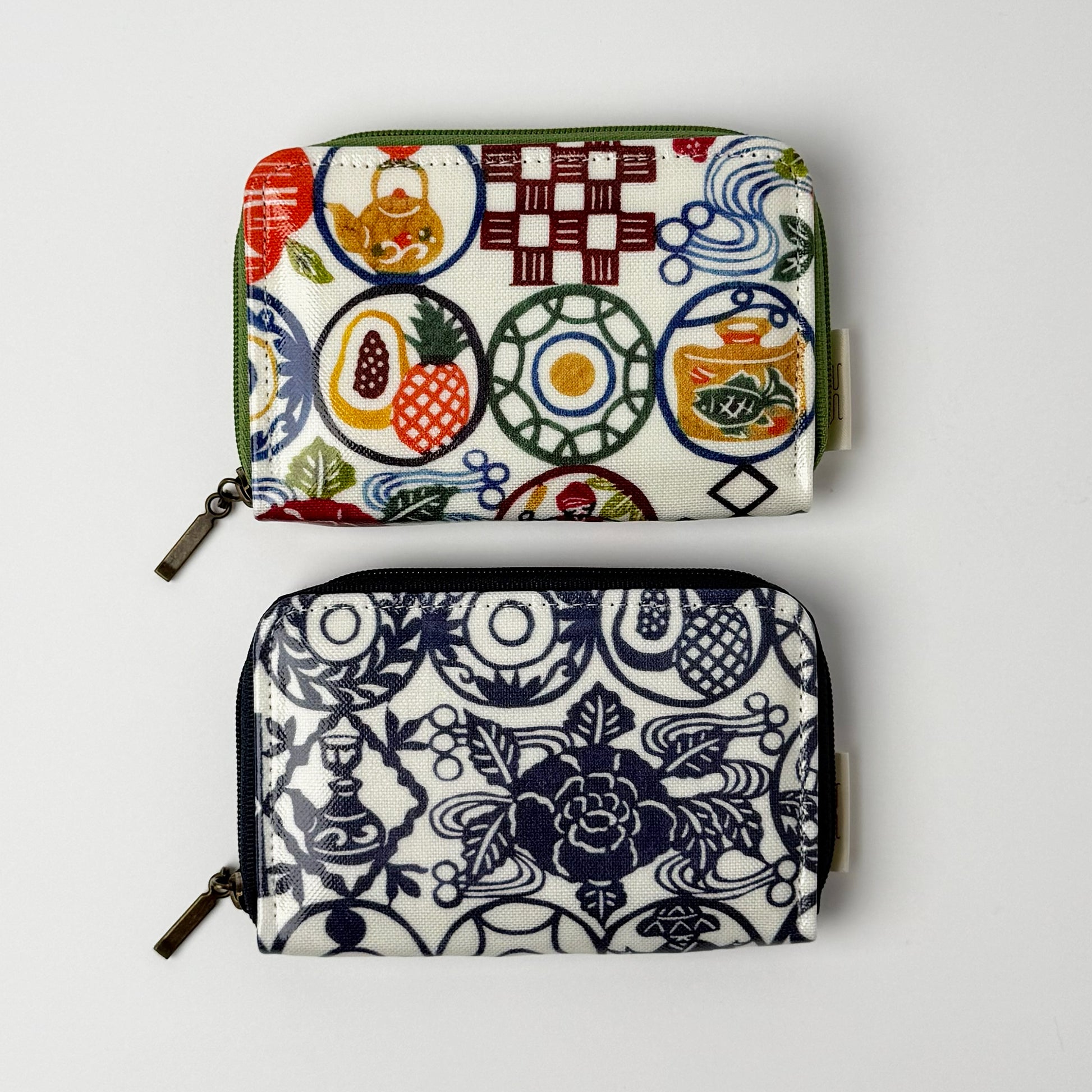古き良き琉球の暮らしの風景を表現した生地を使用したコインケース。琉球(沖縄)の伝統や文化にまつわるモチーフをちゃんぷるー(ごちゃまぜ)して鮮やかにデザインしています。中は仕切りがあり、小銭やレシートなど分けて収納ができます。外側は汚れが付きにくいビニールコーティング加工。