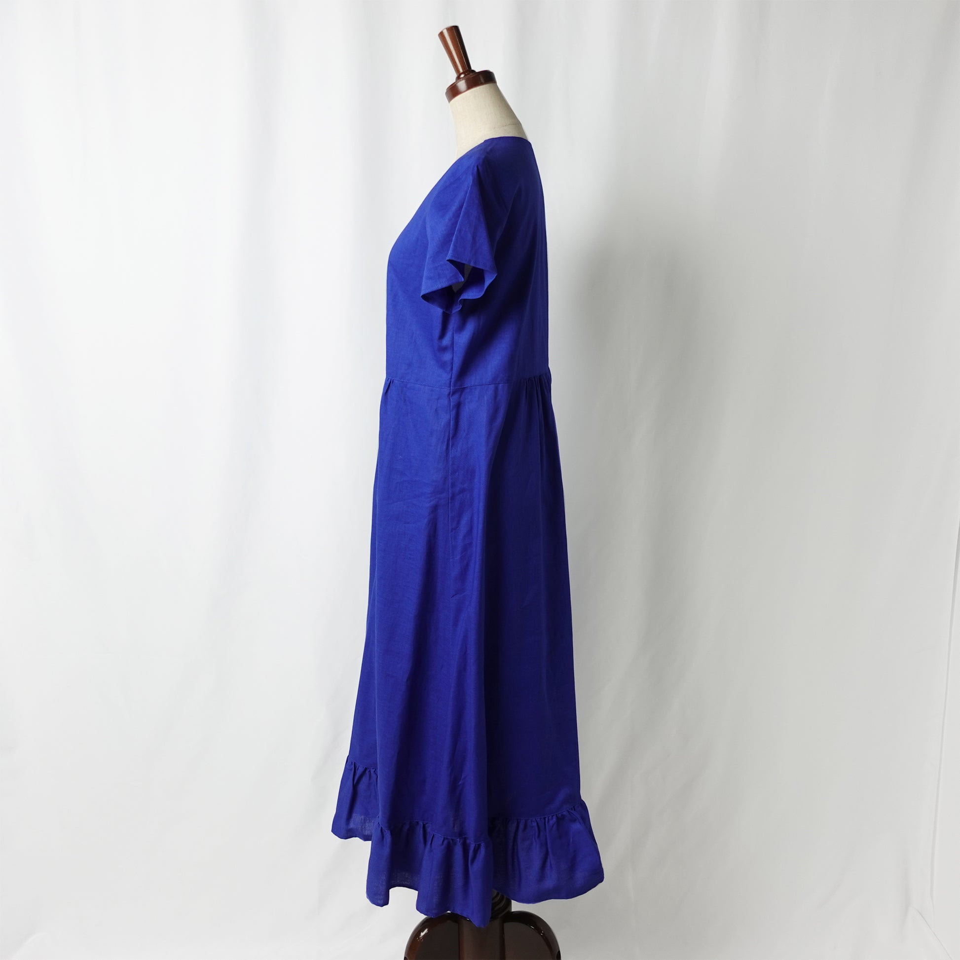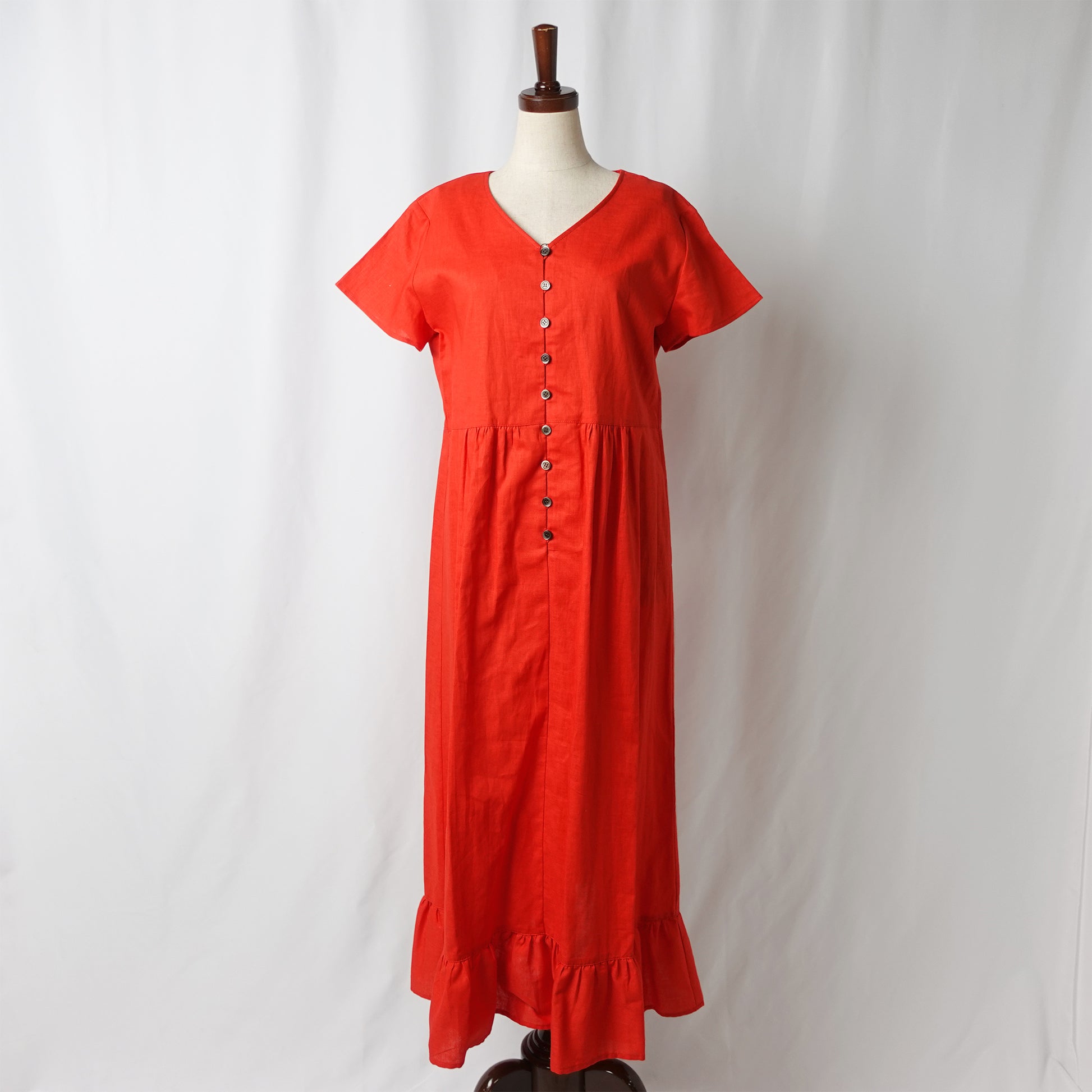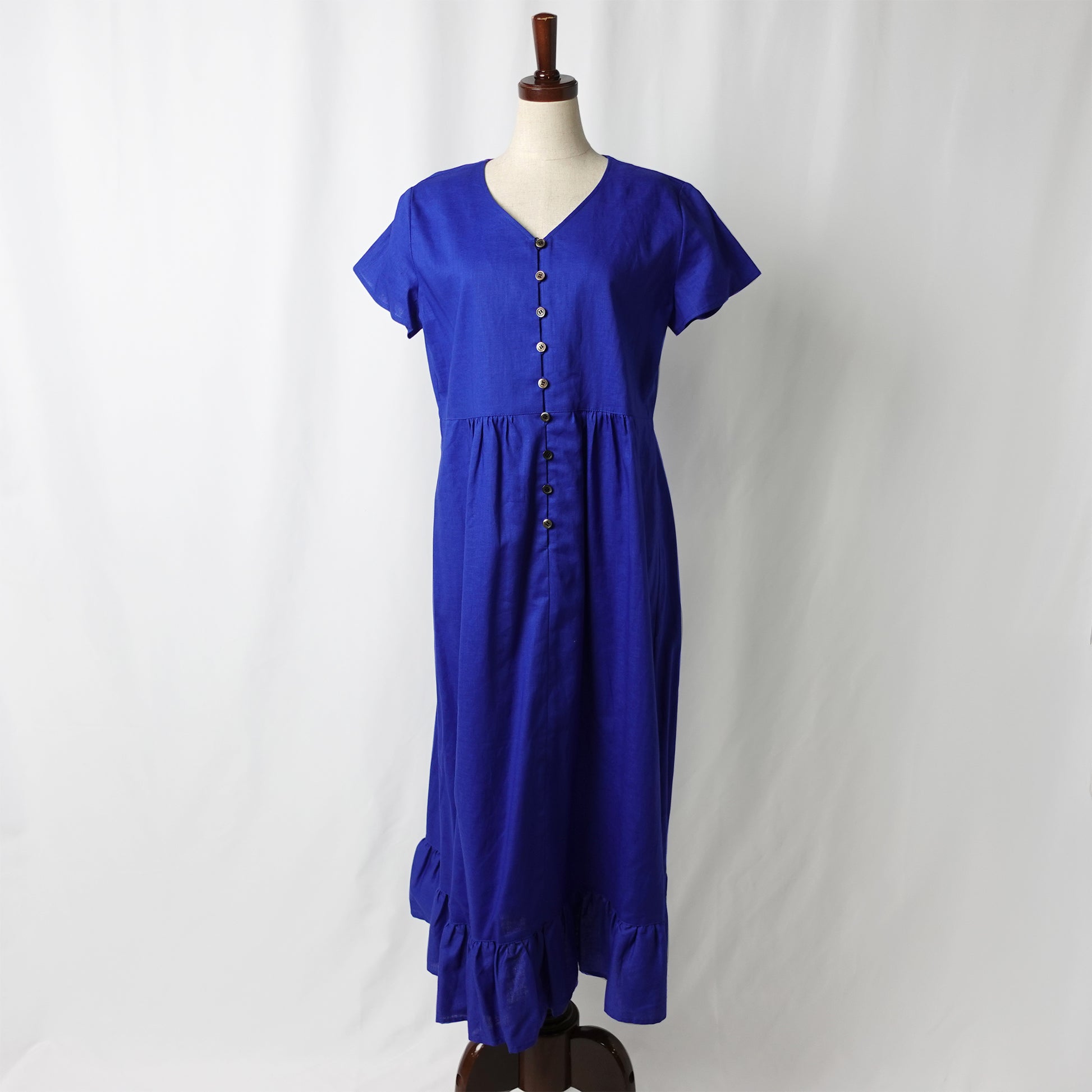 沖縄の眩しい日差しに映えるカラーが印象的。コットンリネン素材で軽やかに着て頂け、リゾート地はもちろん、タウンユースにも着回し可能です。お袖付きで二の腕カバーにも。