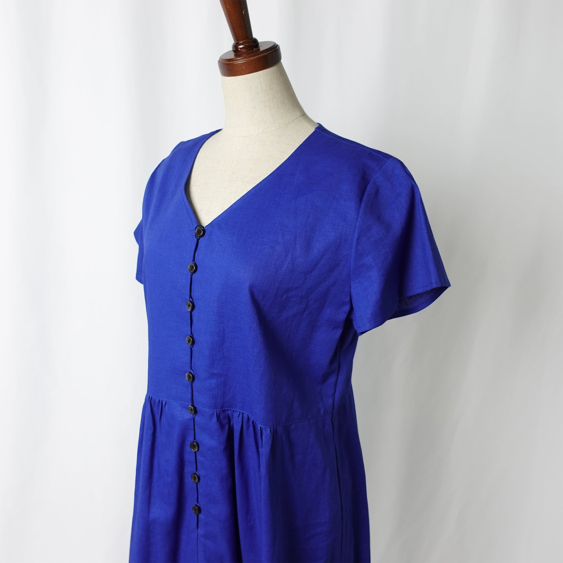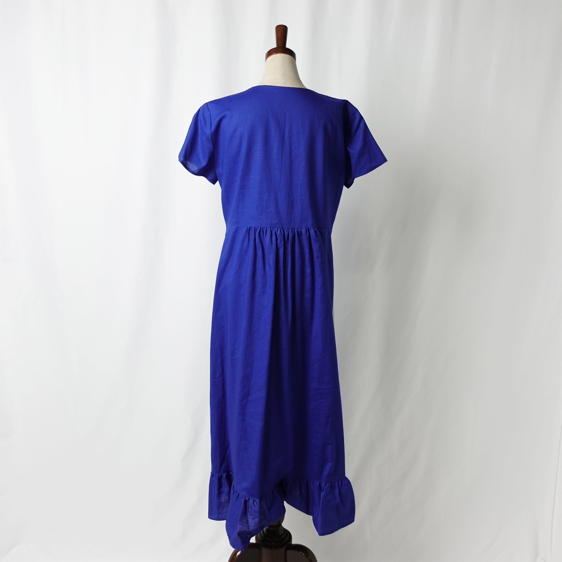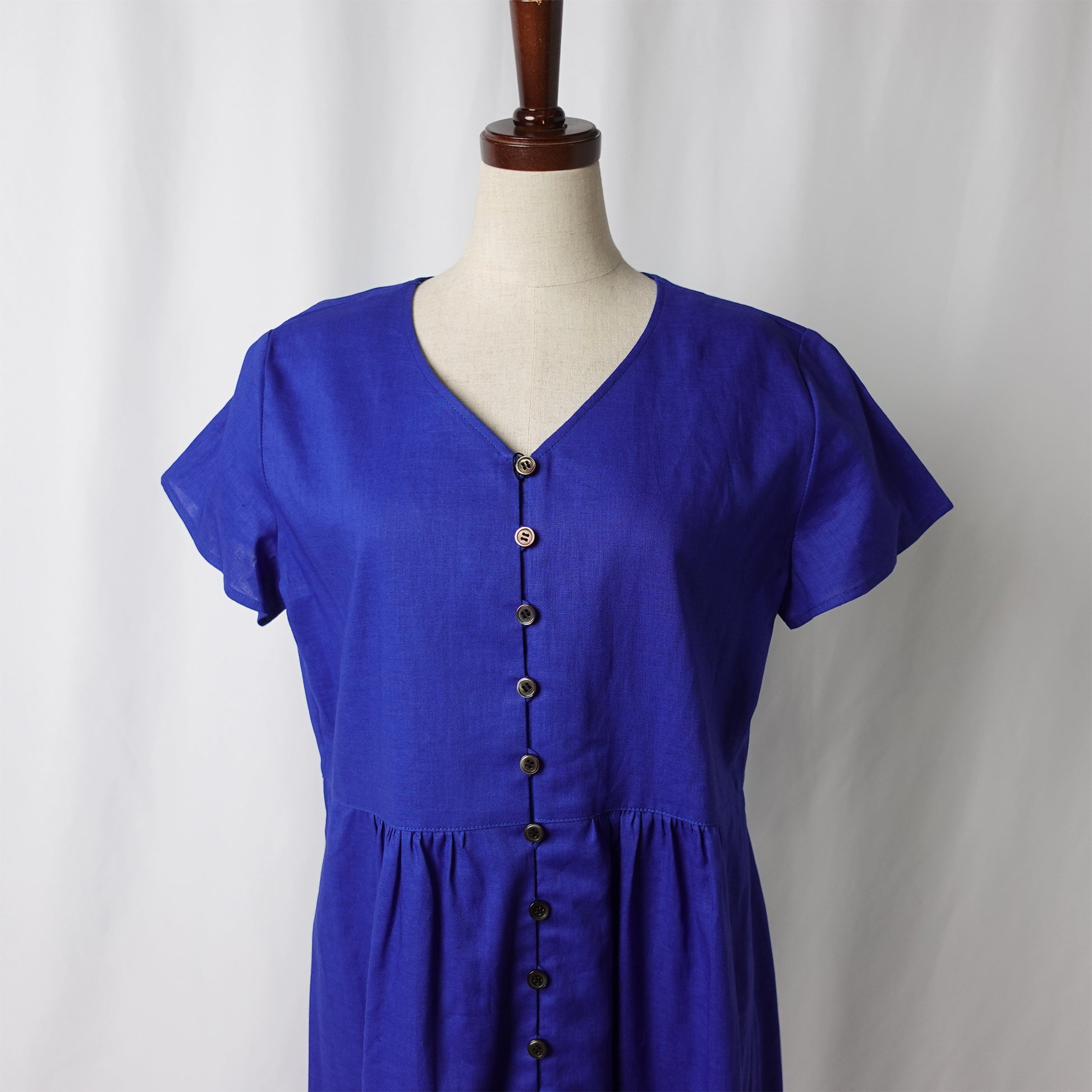 沖縄の眩しい日差しに映えるカラーが印象的。コットンリネン素材で軽やかに着て頂け、リゾート地はもちろん、タウンユースにも着回し可能です。お袖付きで二の腕カバーにも。