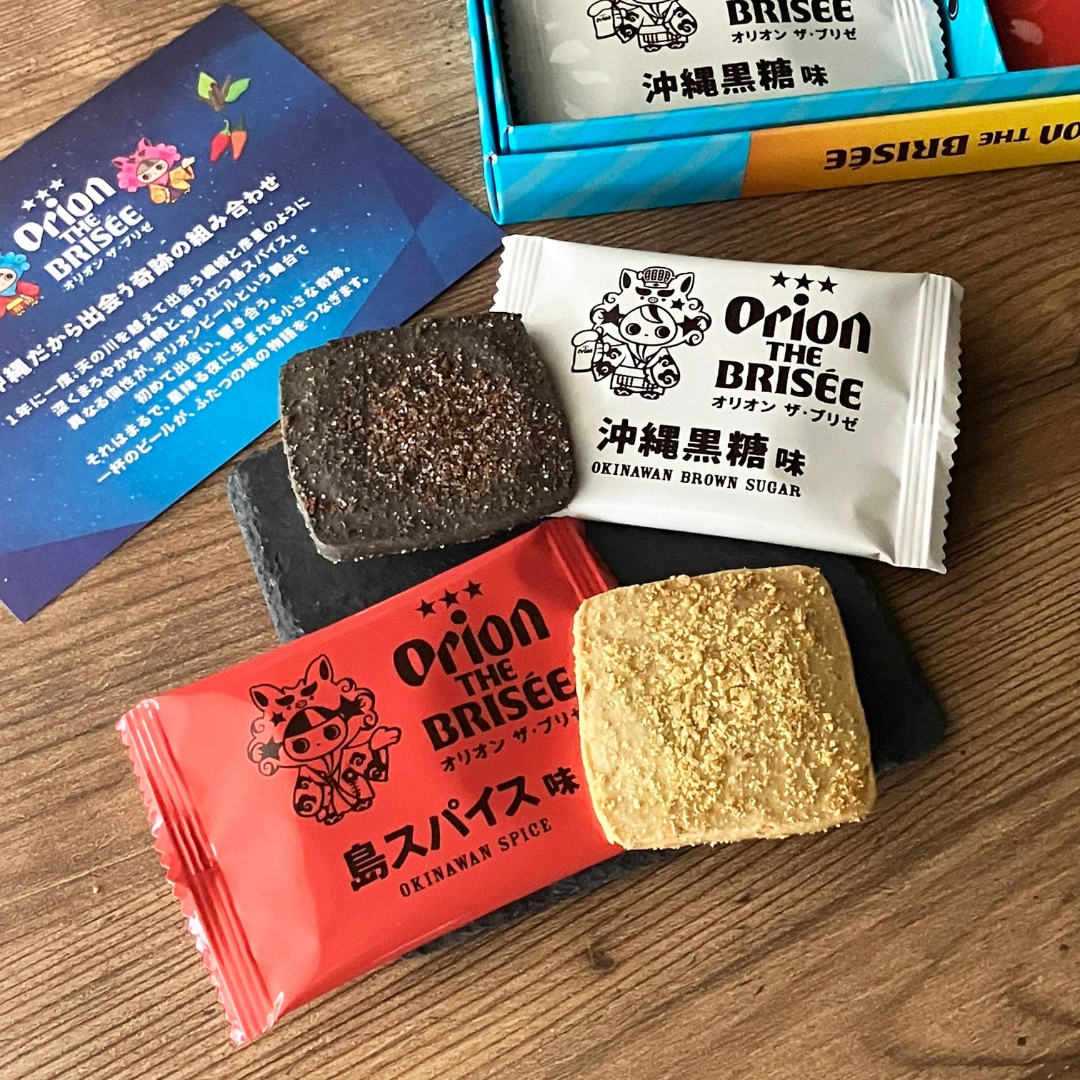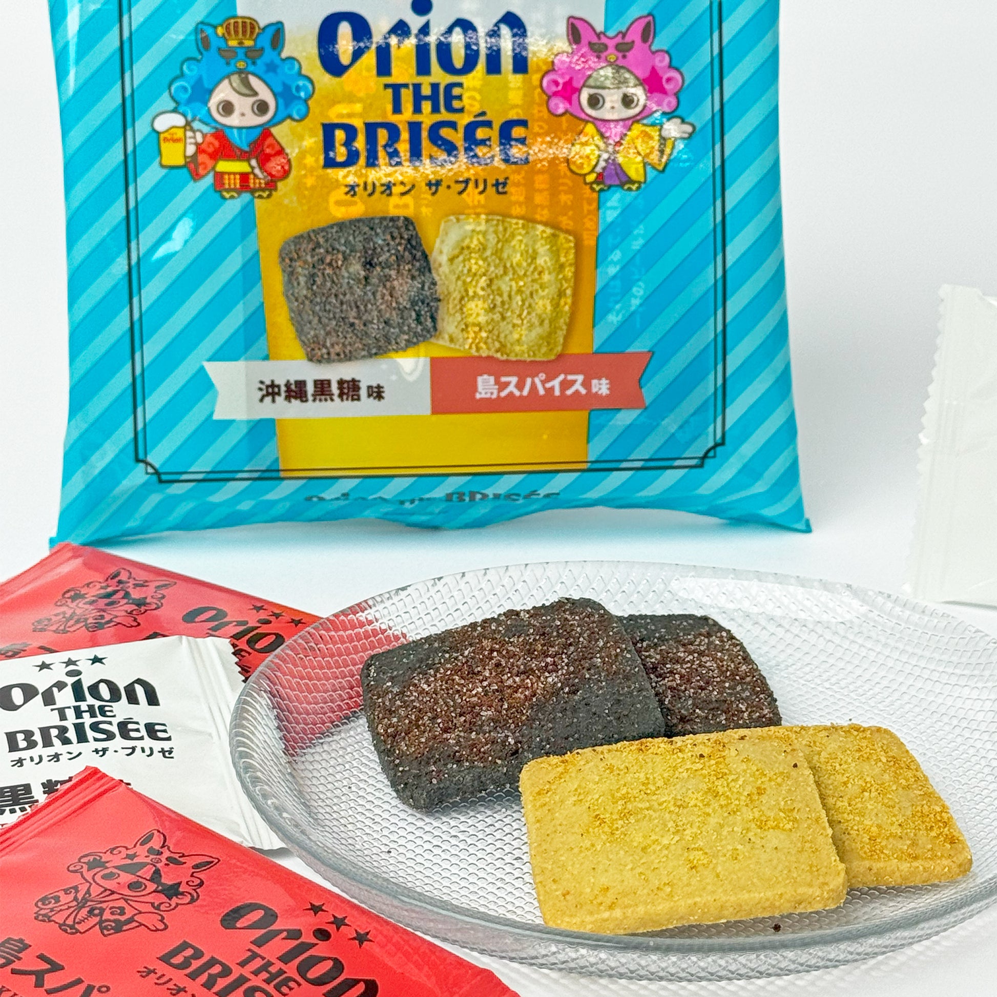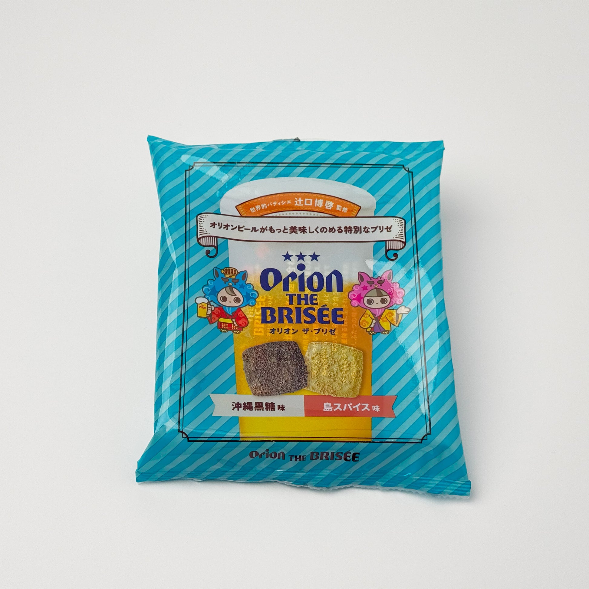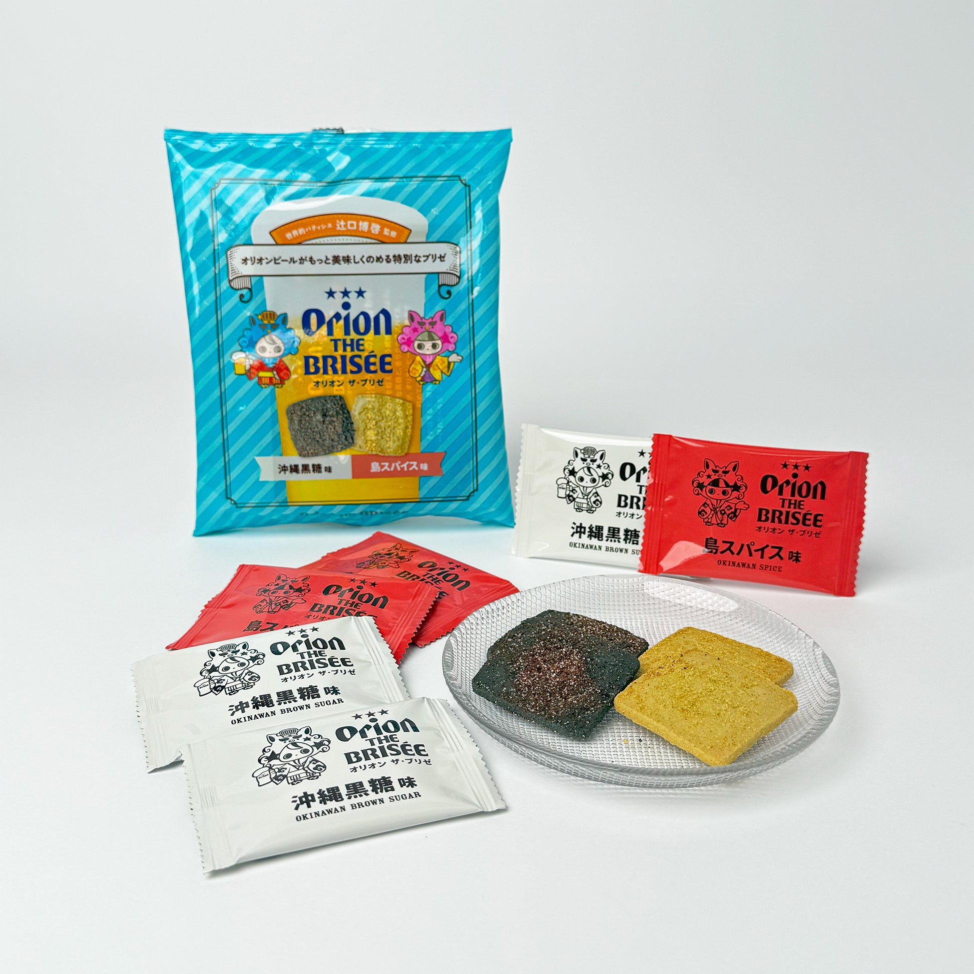 ”オリオンビールがもっと美味しくのめる特別なブリゼ”をコンセプトにフランス菓子の技法“ブリゼ(brisée)”と、オリオンビールのビール酵母を掛け合わせた、全く新しいおつまみスイーツです。ブリゼとは、フランス料理やフランス菓子で使われるタルト生地の一種で、サクサクと軽やかで、バターの風味が豊かに香るのが特徴。ビールとの相性も良く、お酒の時間をより上質に演出してくれます。お味は、島スパイス味と沖縄黒糖味の2フレーバーが入っています。