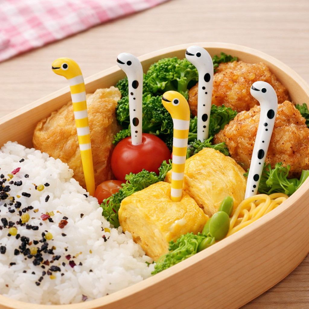 ちんあなご&にしきあなごをモチーフにしたユニークなデザインで、おかずやフルーツに刺すだけで、簡単に楽しいお弁当が完成します。